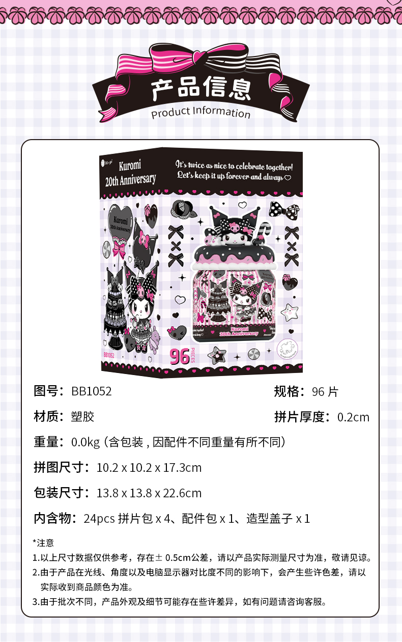 96片 收纳罐拼图 BB1052 Pink & Black Party-黑色盛宴-三丽鸥家族系列Kuromi