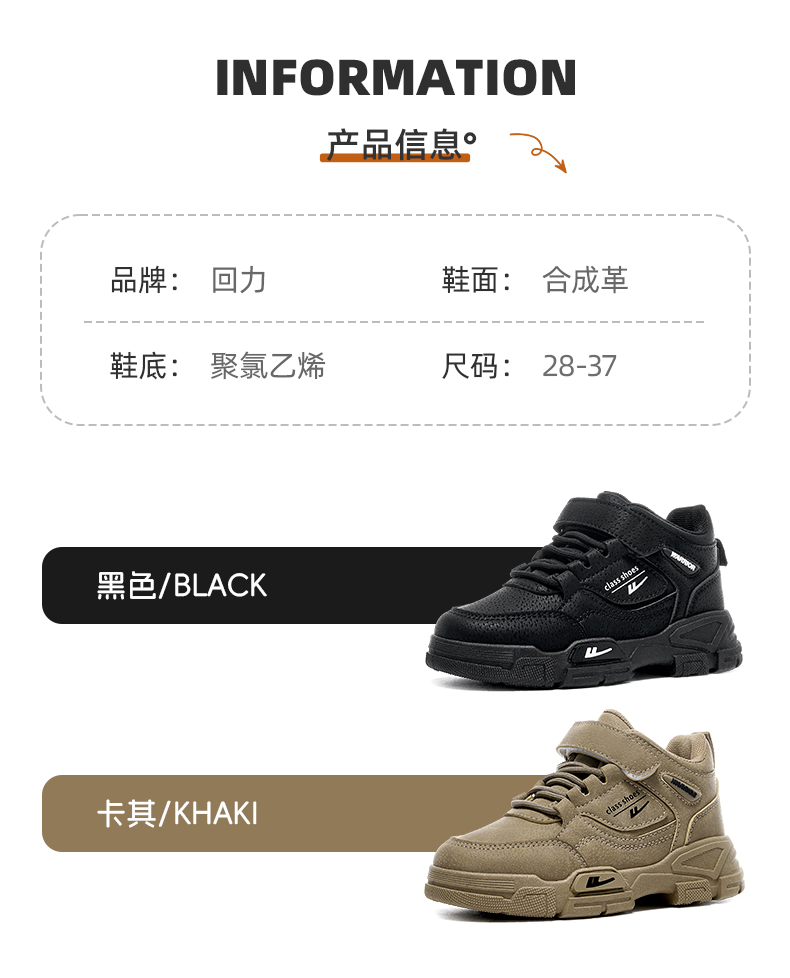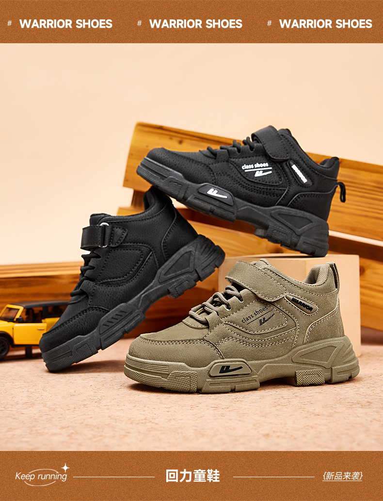 回力儿童运动鞋靴子男冬季新款男孩黑色中大童鞋子户外登山鞋男童