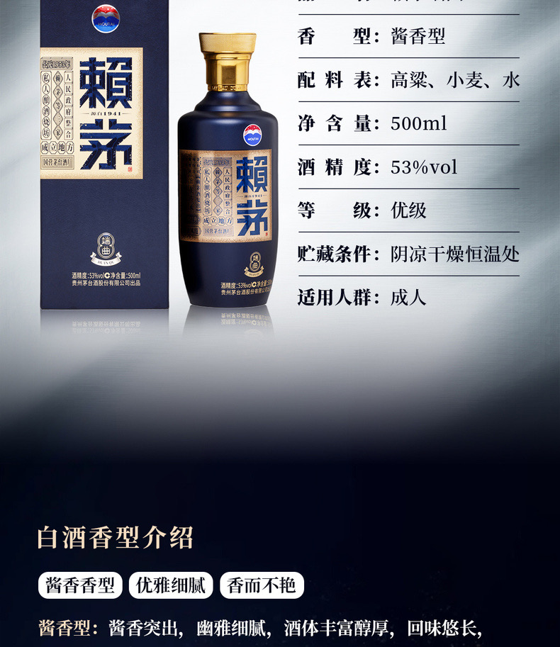 赖茅 端曲2.0蓝 53度500ml*6 (整箱装)--jmw