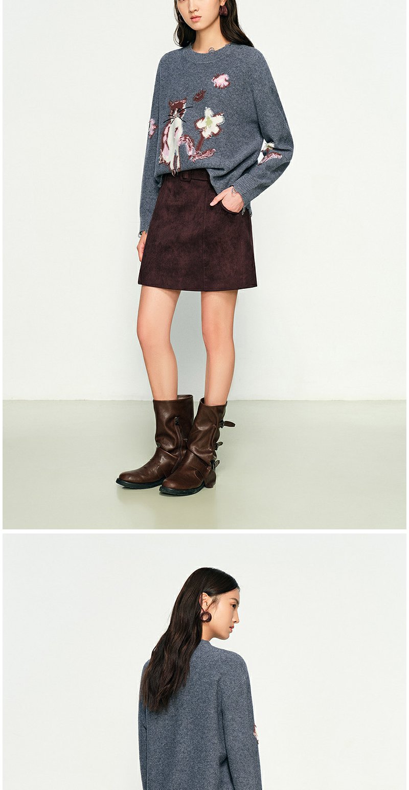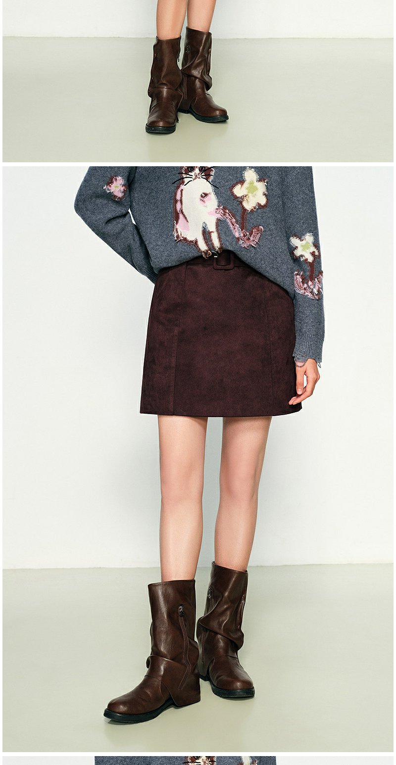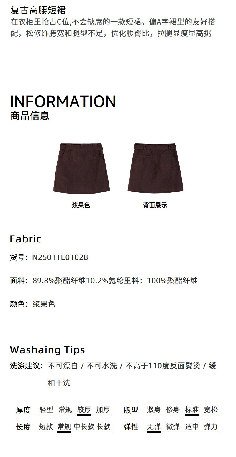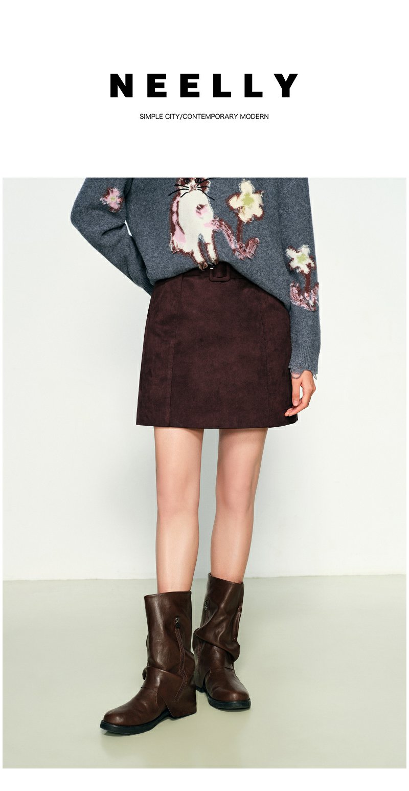 NEELLY纳俪商场同款秋季新款复古显白高腰短裙女简约显瘦A字裙N25094E04628