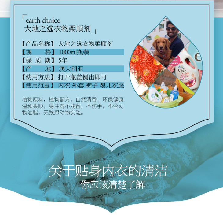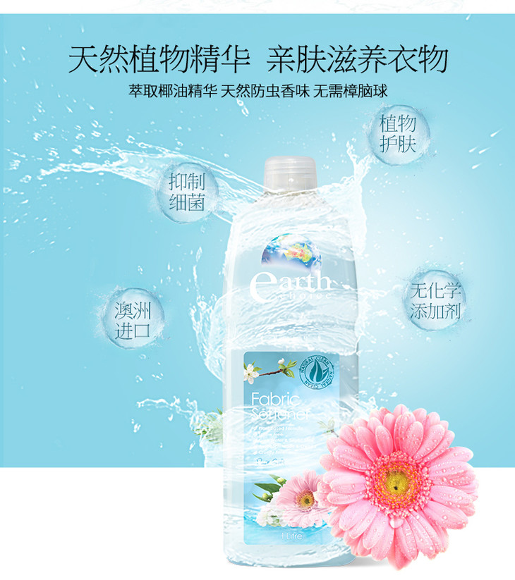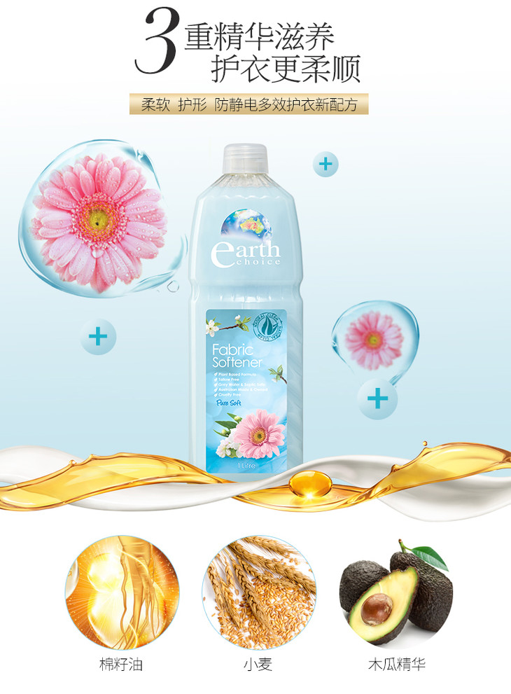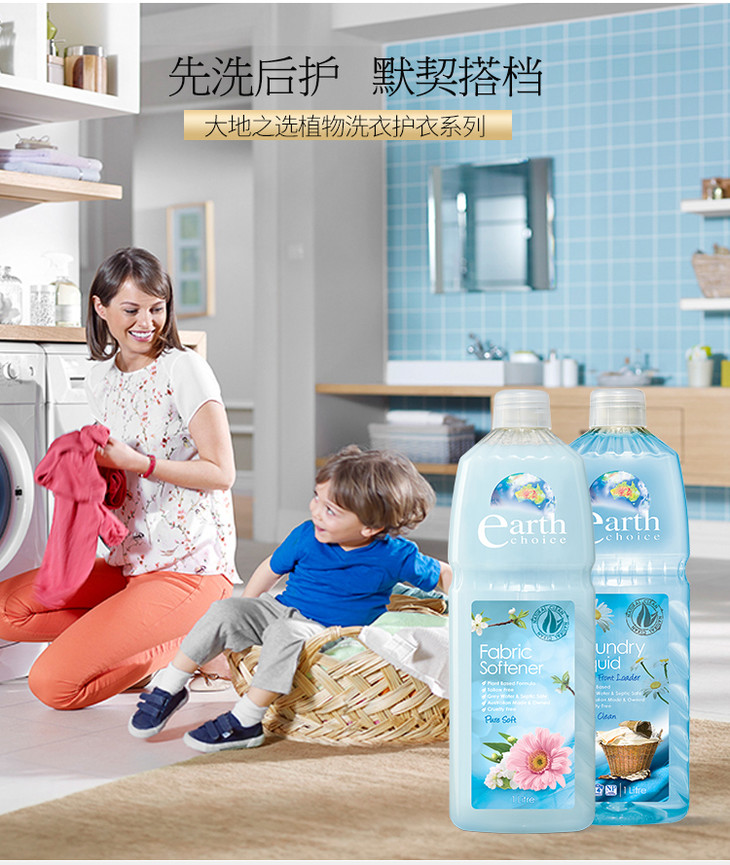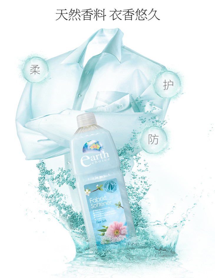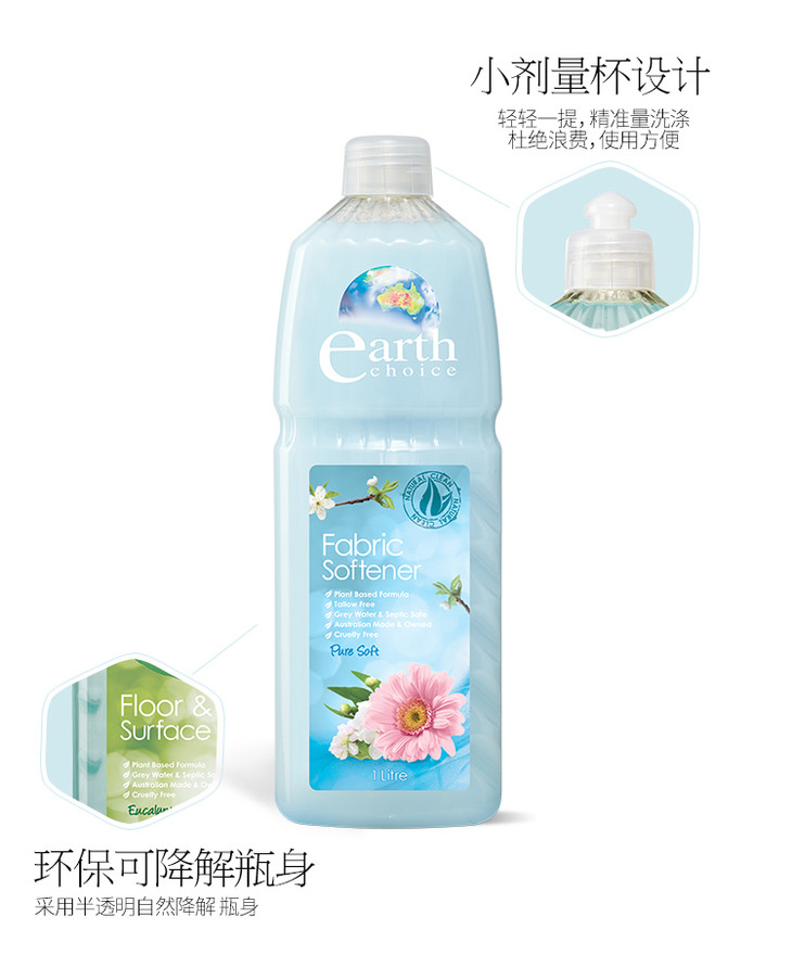 【天然衣物柔顺剂】来自澳洲原装进口大地之选(earthchoice)无磷衣物柔顺剂1000ml