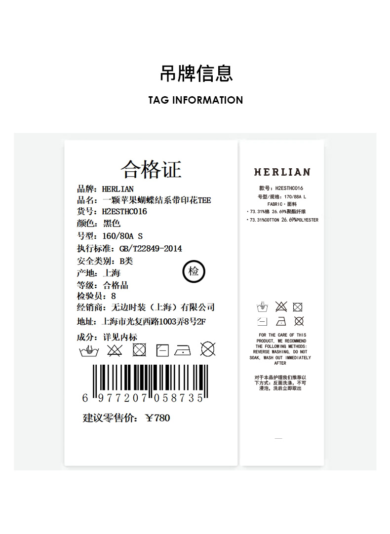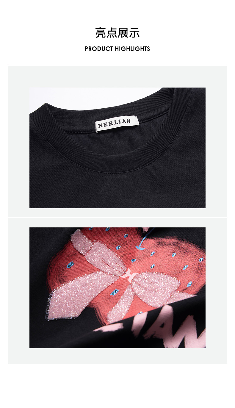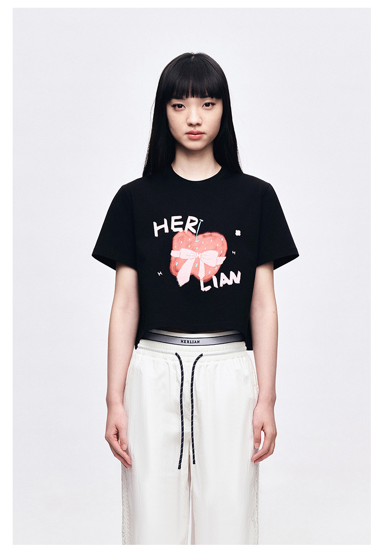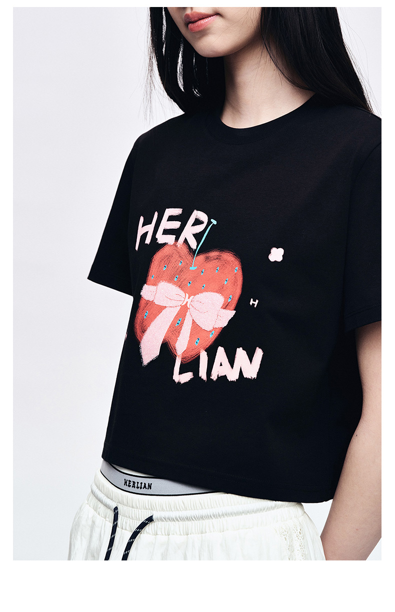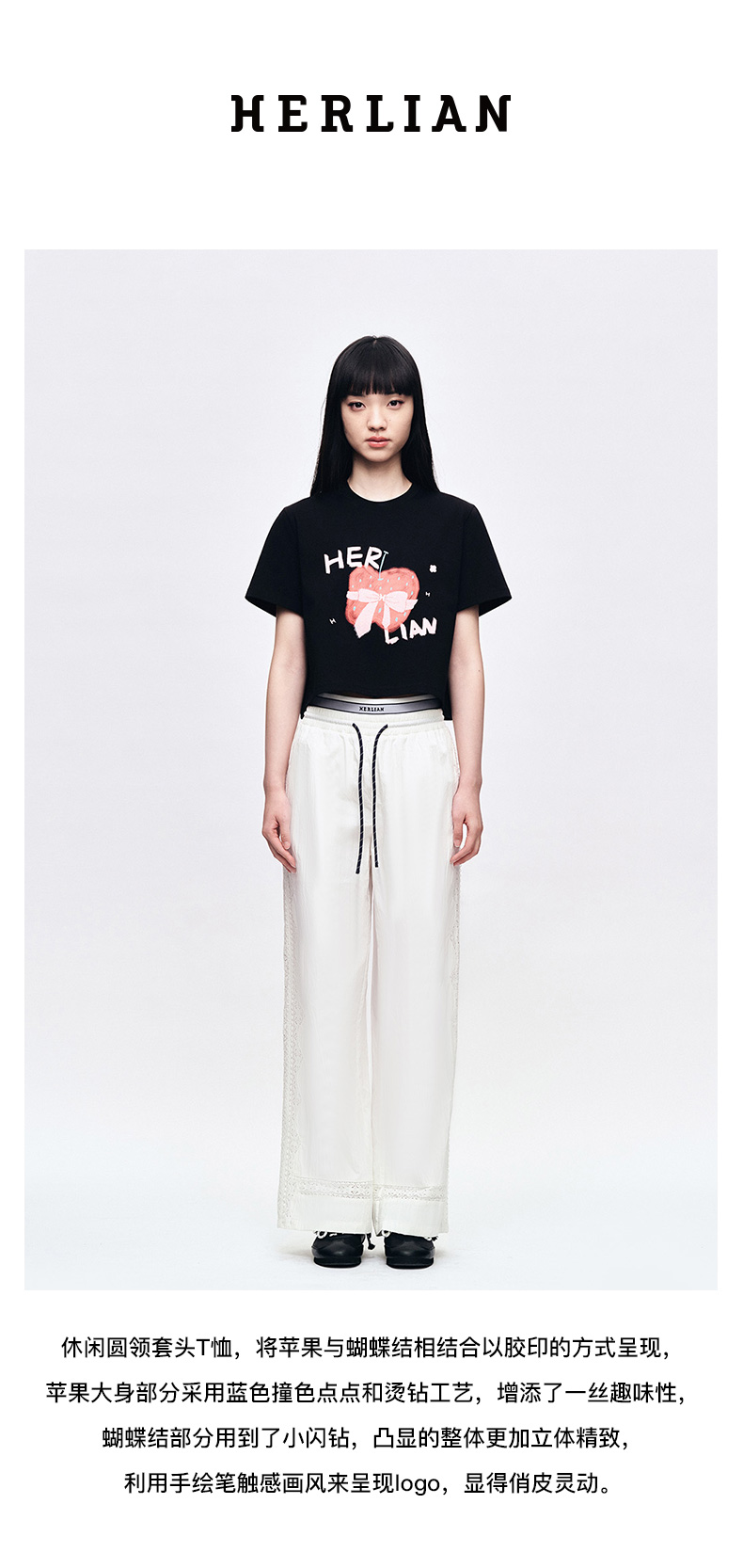 Herlian2025年春夏新品一颗苹果蝴蝶结系带印花TEE短袖