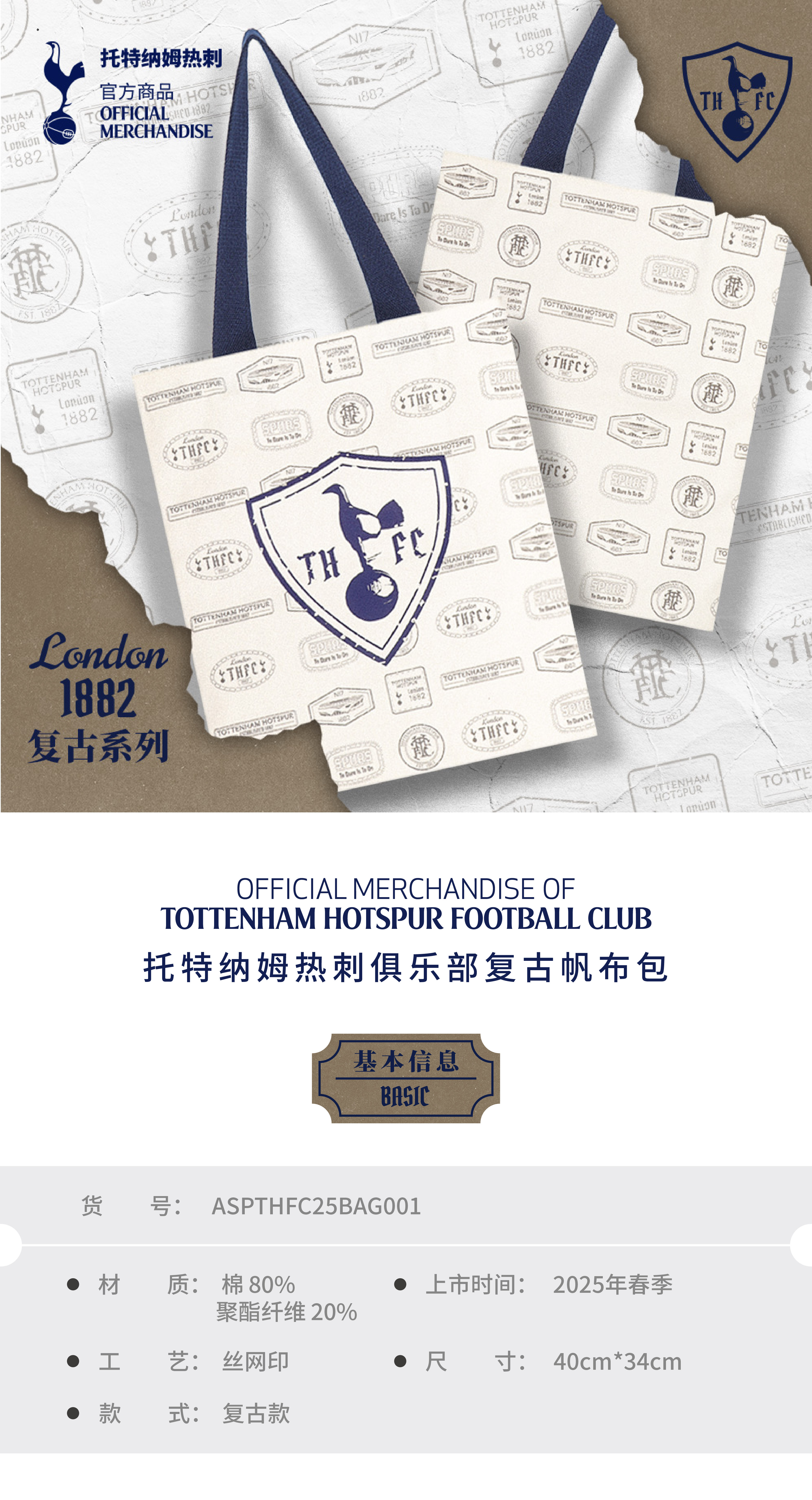 【官方正版】托特纳姆热刺俱乐部 | 复古队徽印花帆布包