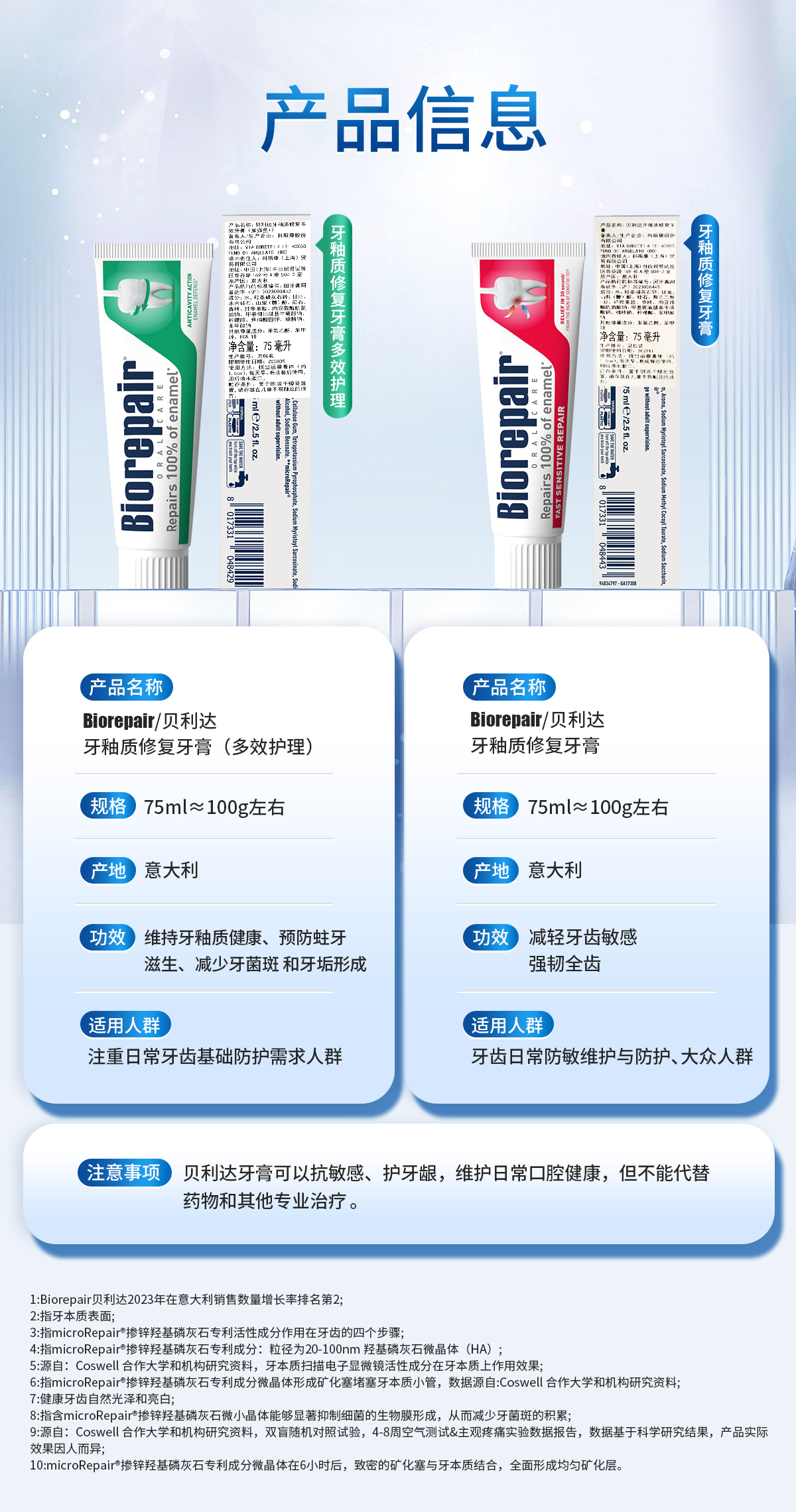 贝利达牙釉质修复抗敏/修复多效牙膏加强型+75ml 多效合一全面呵护 110415/110414