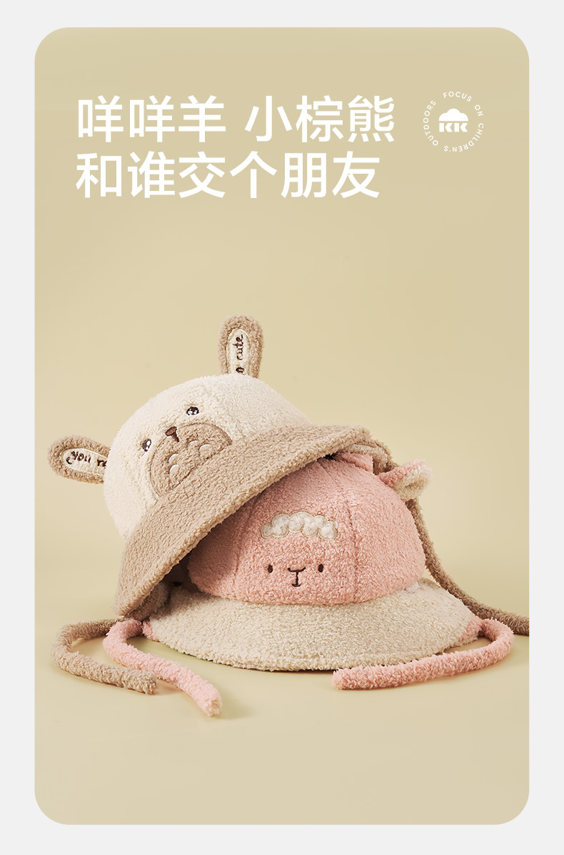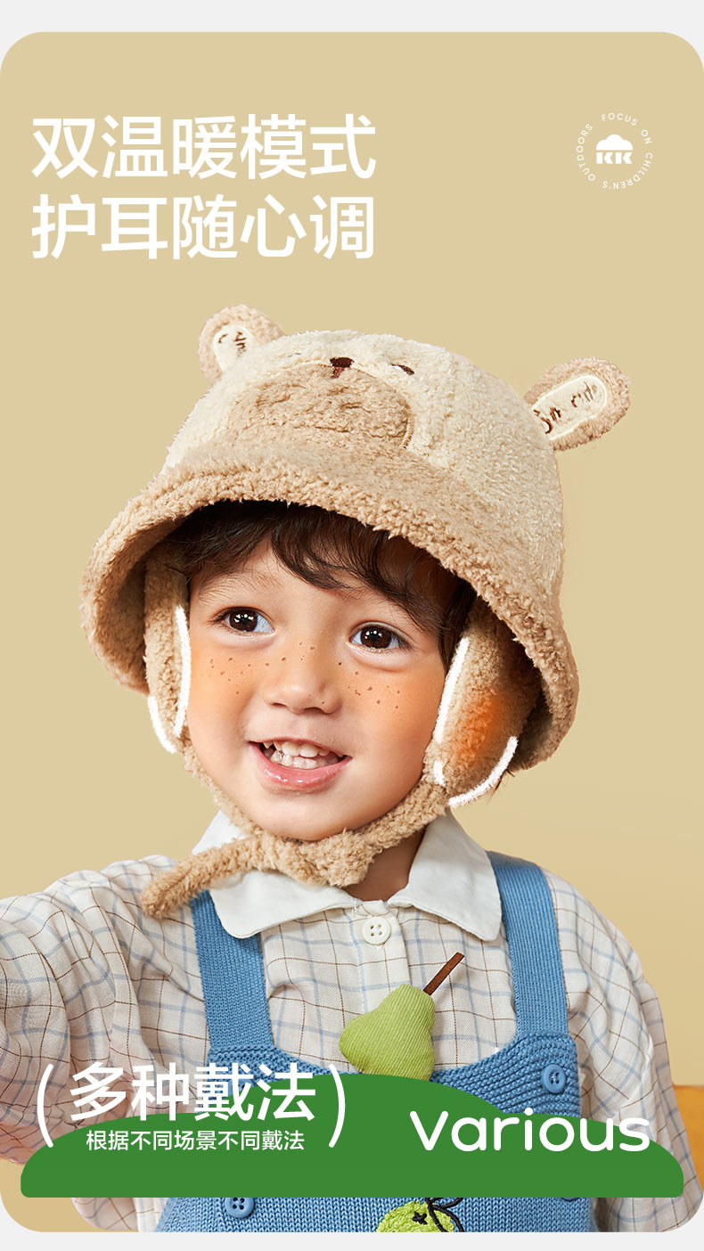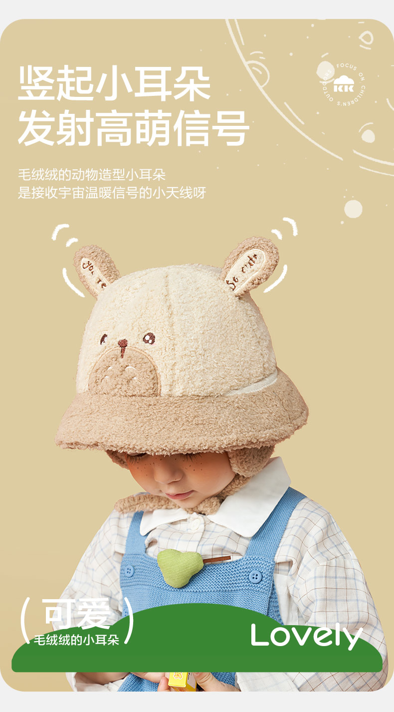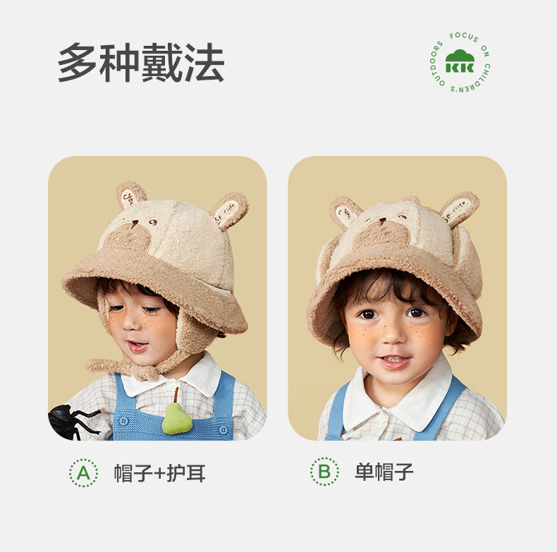 KK树儿童帽子男童女童渔夫帽秋冬季宝宝保暖加厚新款护耳可爱盆帽