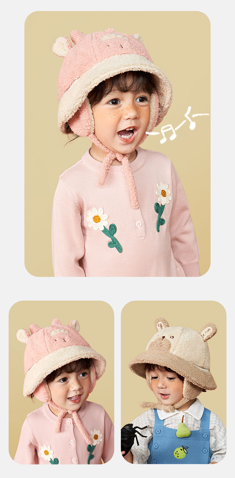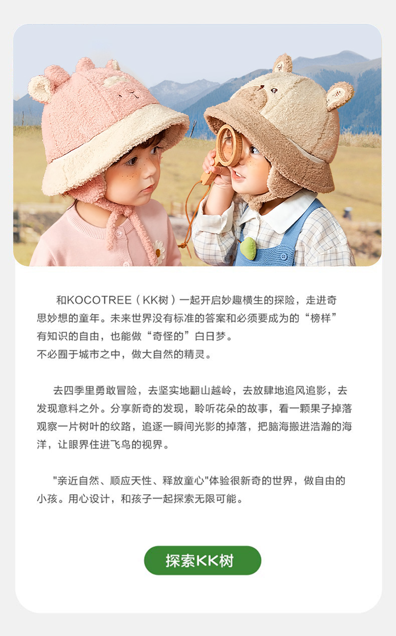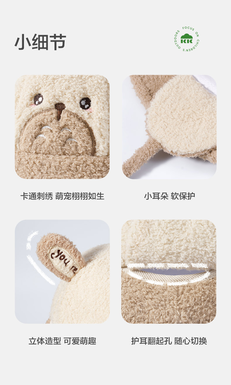 KK树儿童帽子男童女童渔夫帽秋冬季宝宝保暖加厚新款护耳可爱盆帽