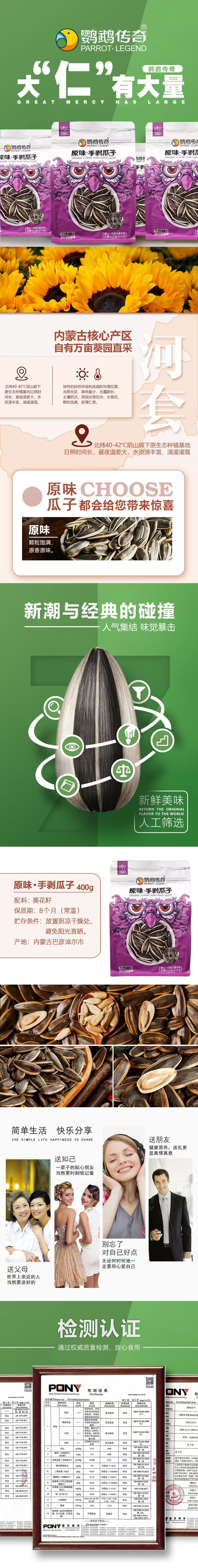 【品名/规格】【鹦鹉传奇】多味瓜子,400g/袋(原味/多味);110g/袋(原味/多味)