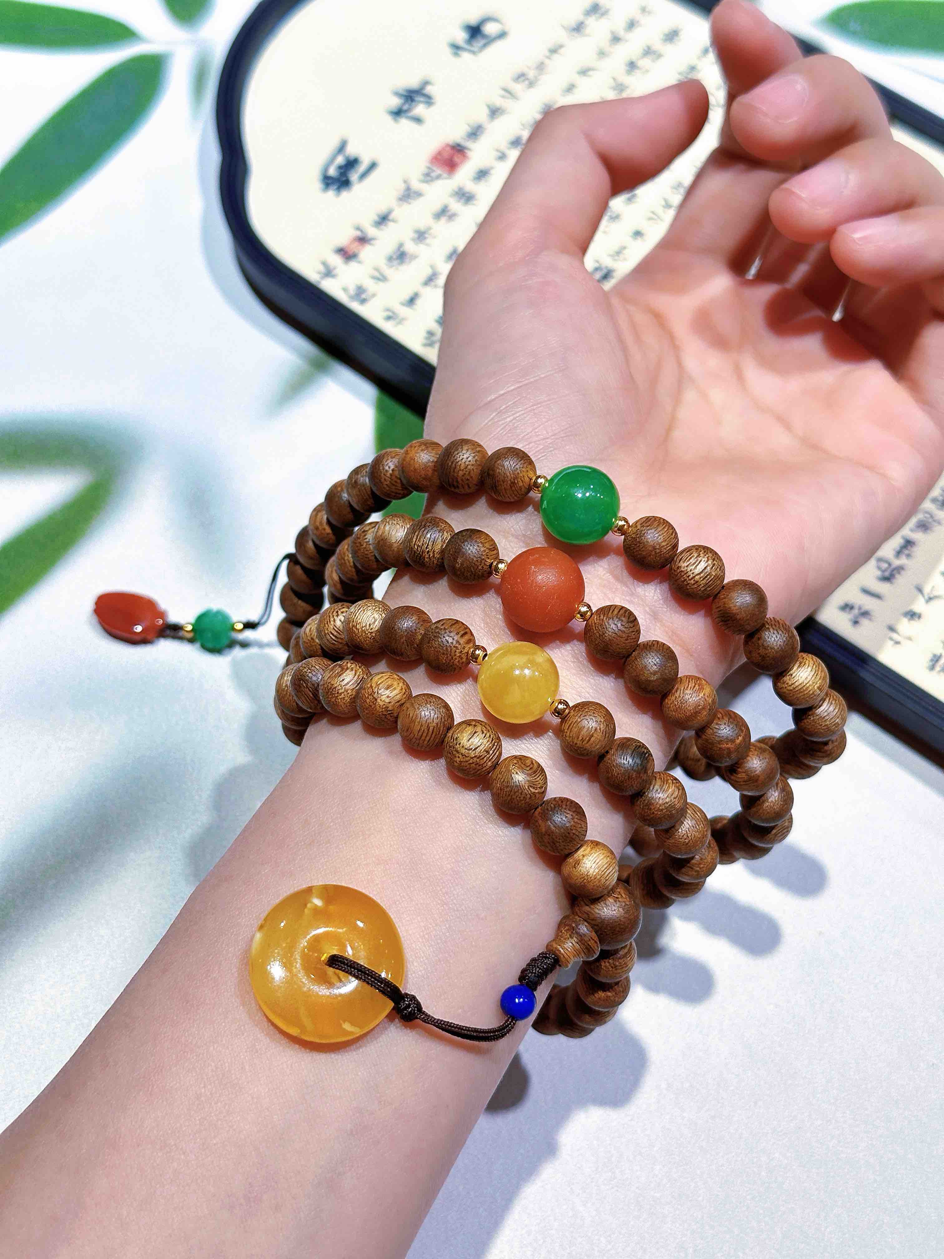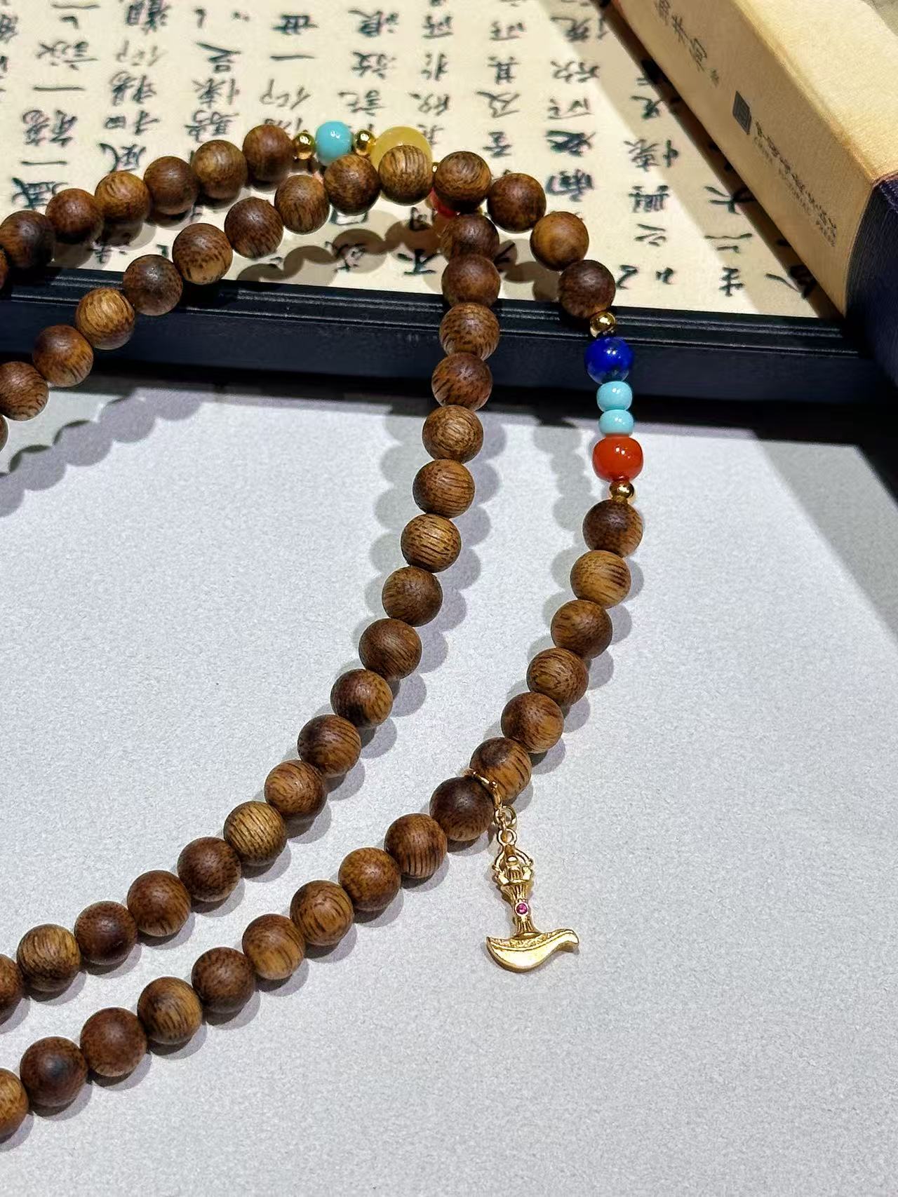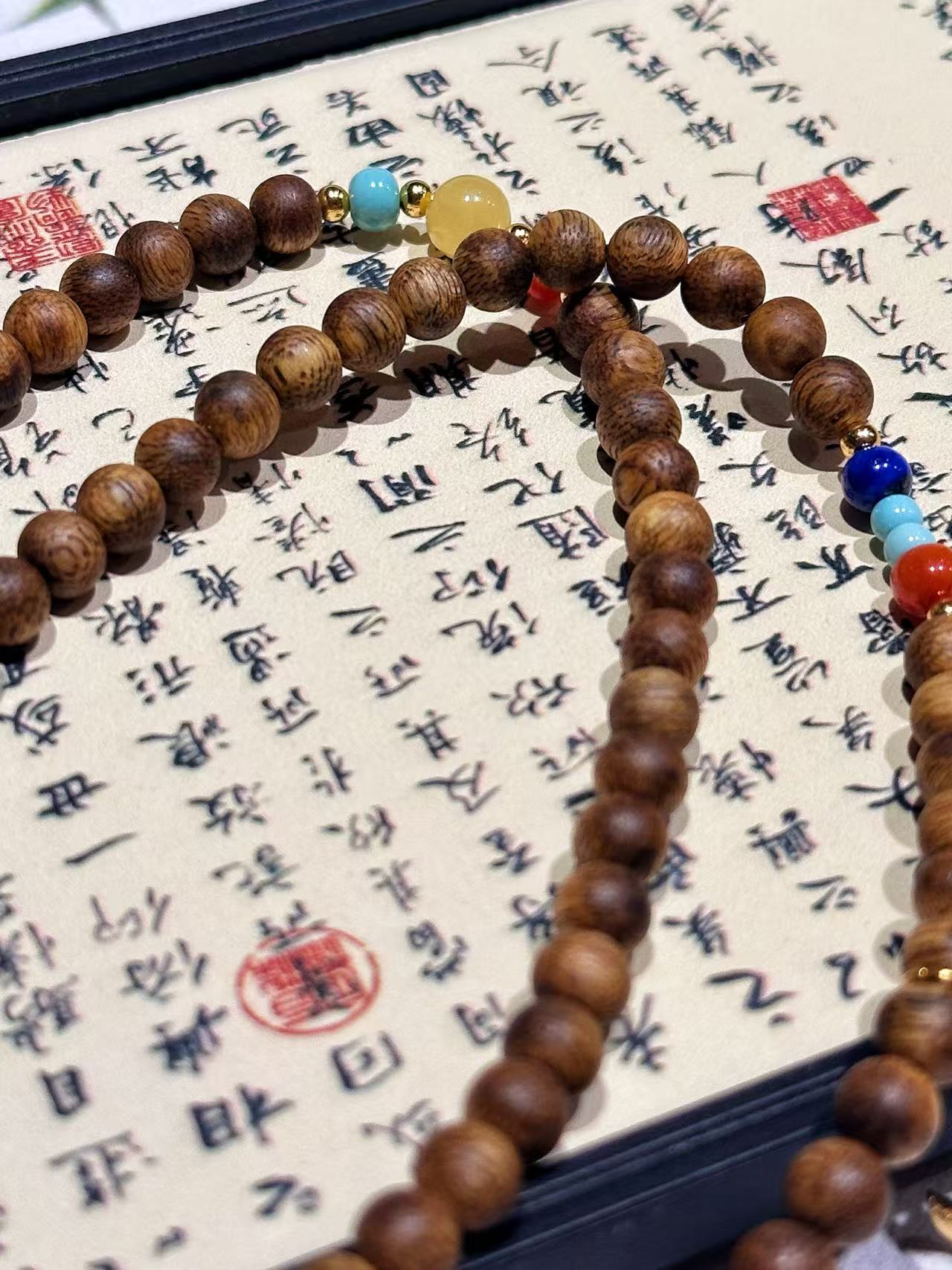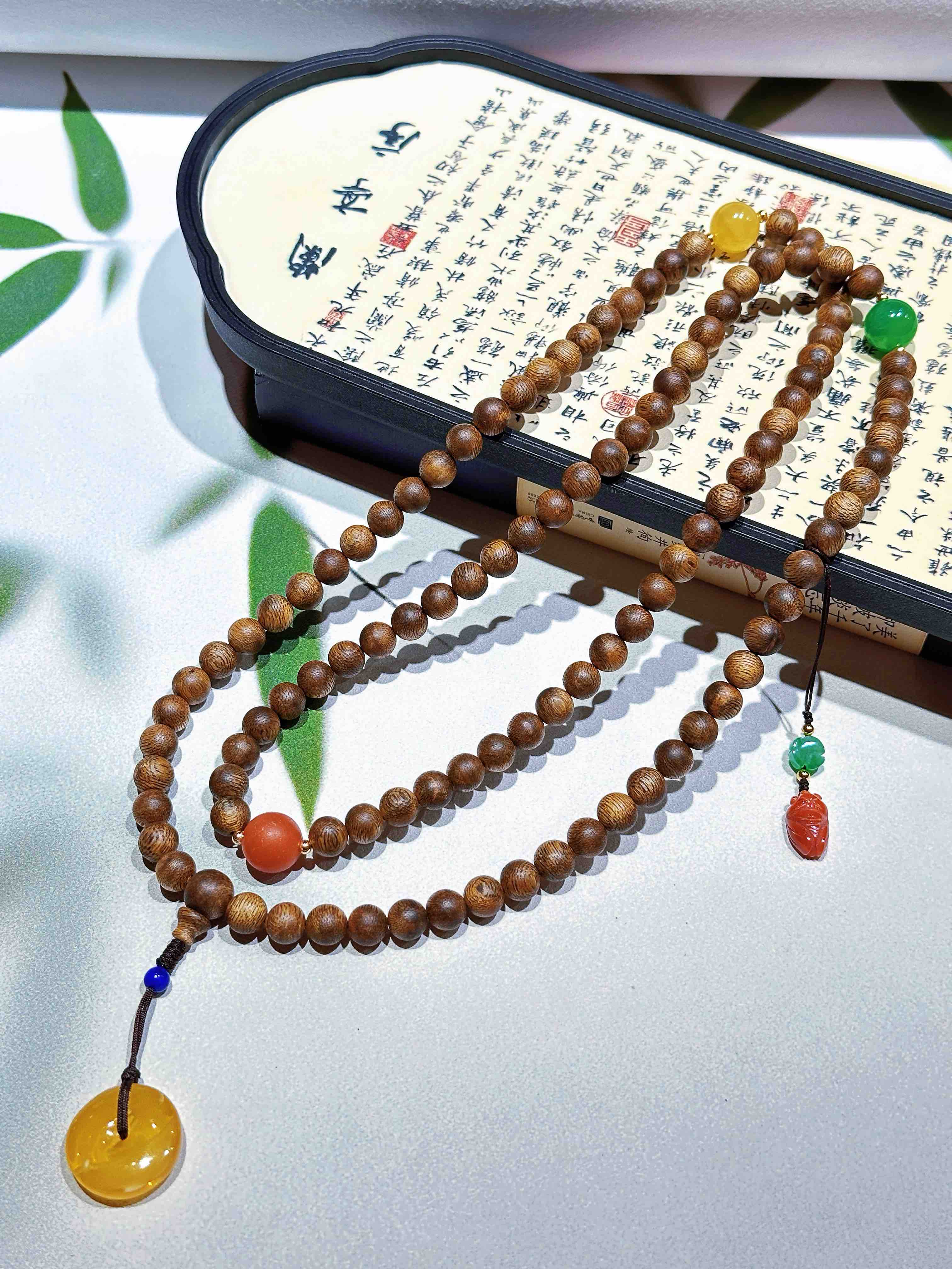 原创手工串制佛珠108粒奇楠沉香老山檀香佛珠念珠男女通用款