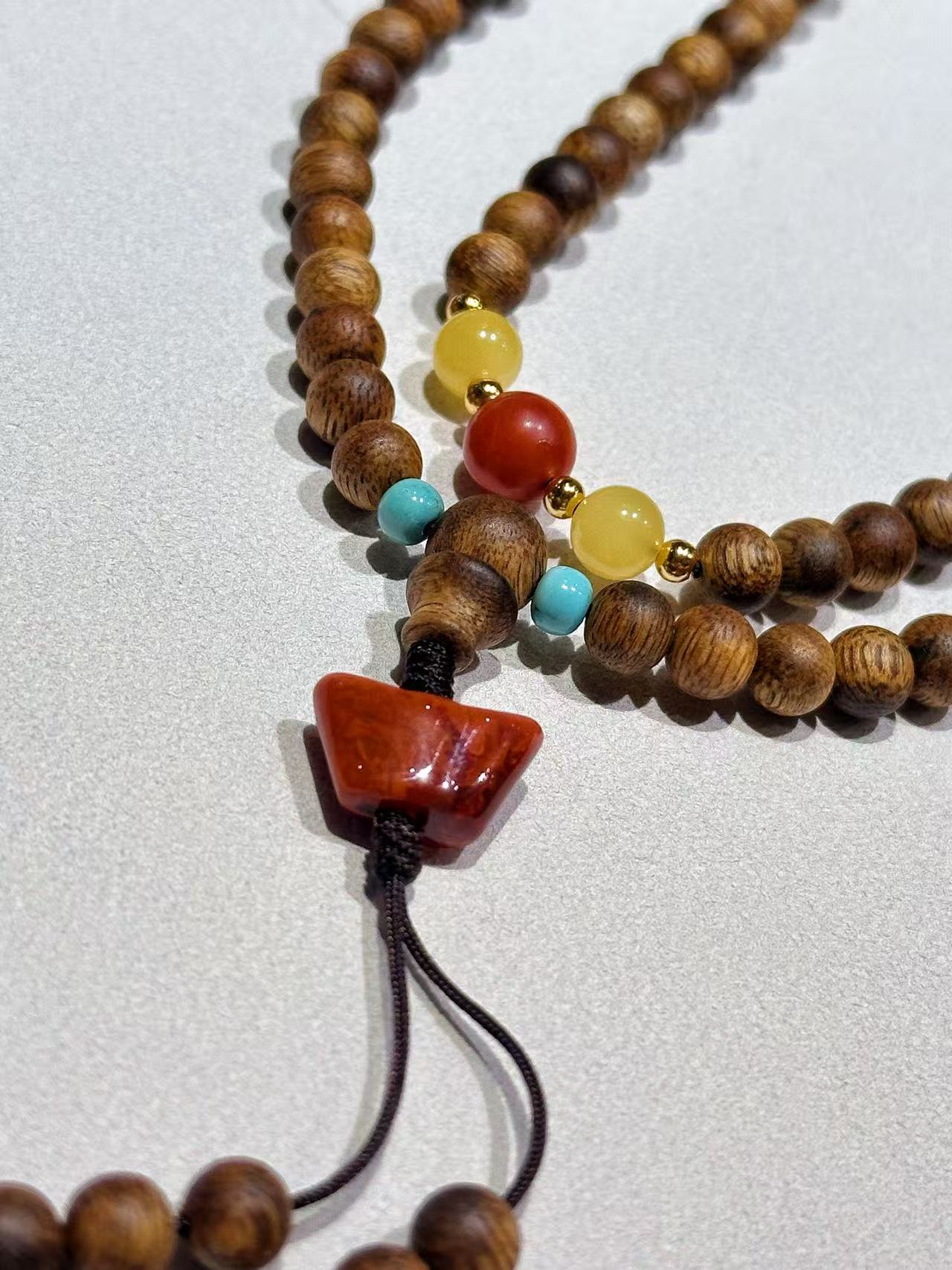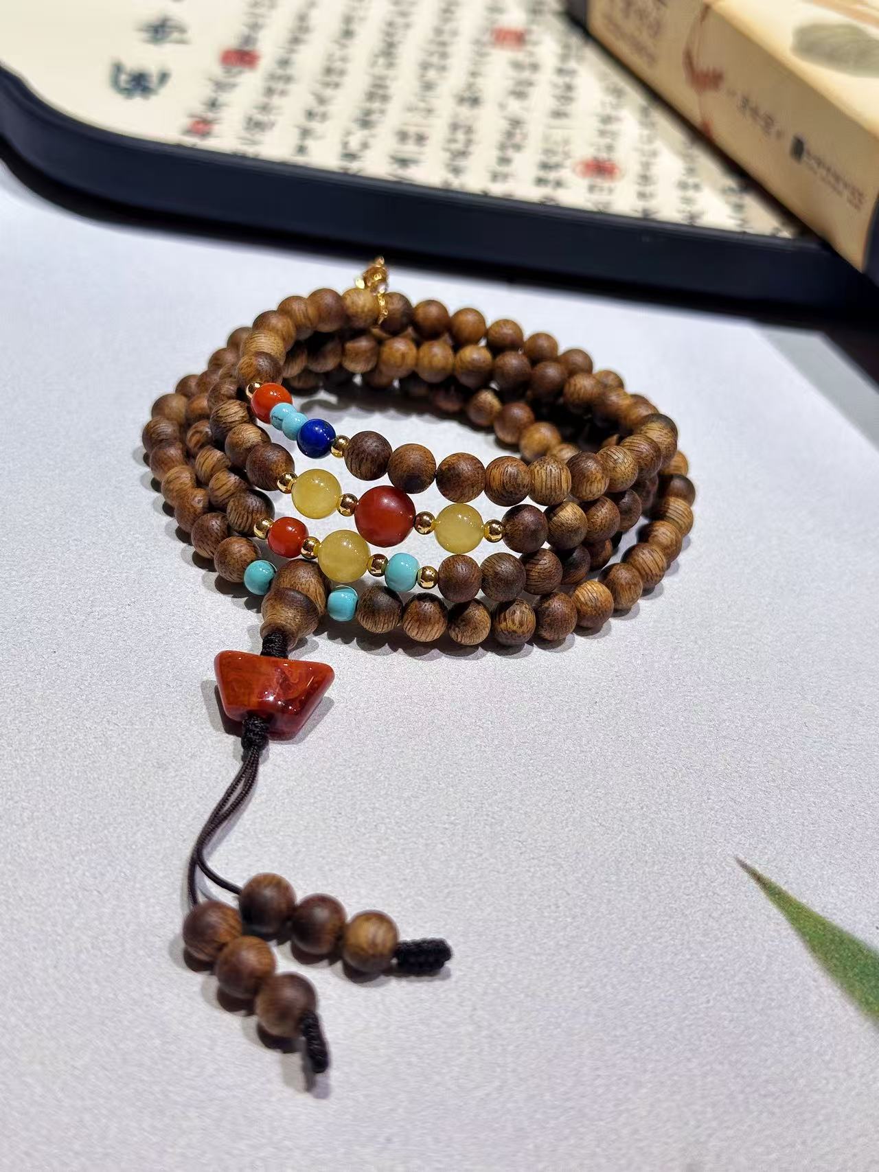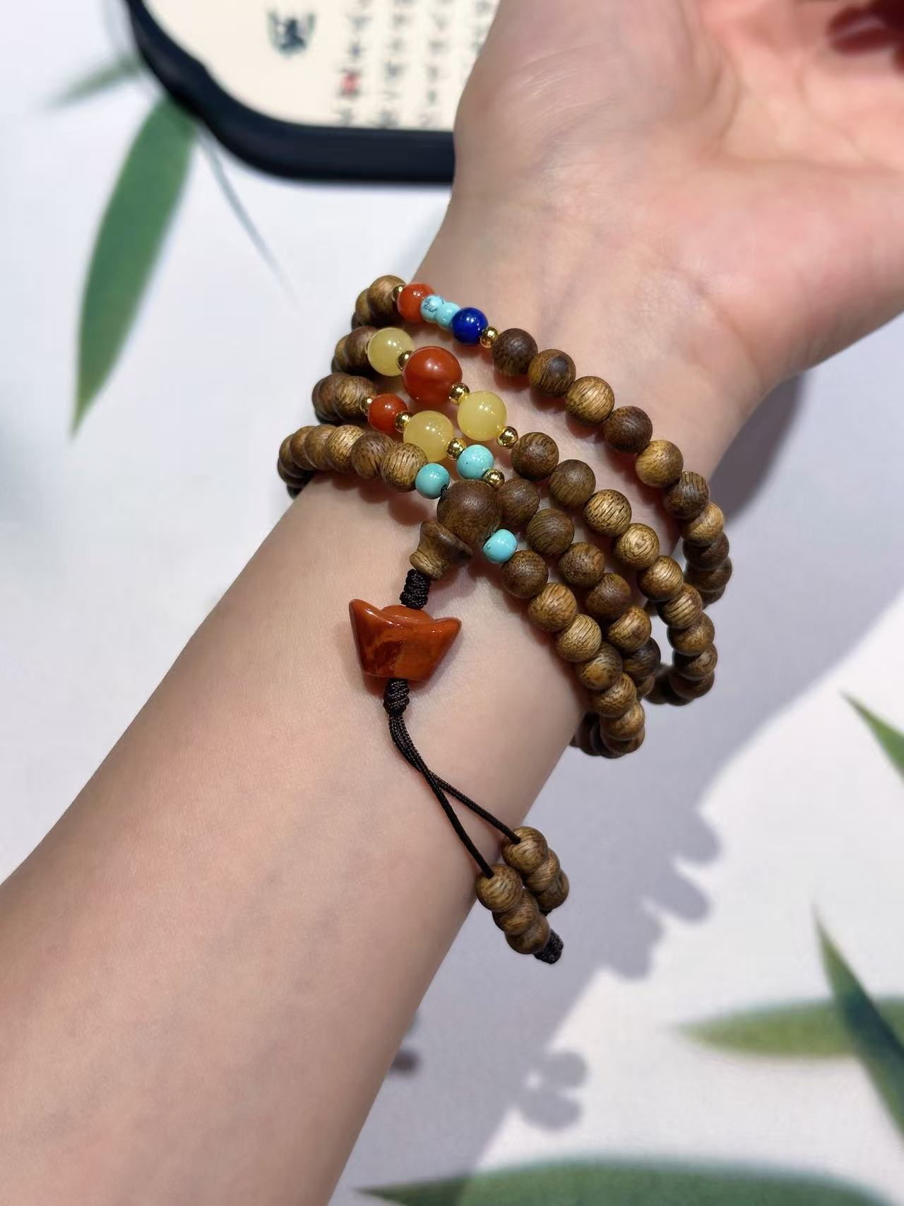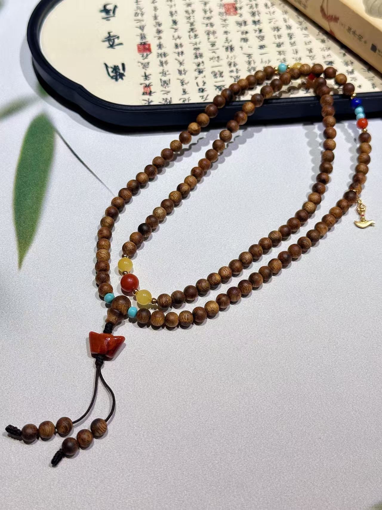 原创手工串制佛珠108粒奇楠沉香老山檀香佛珠念珠男女通用款