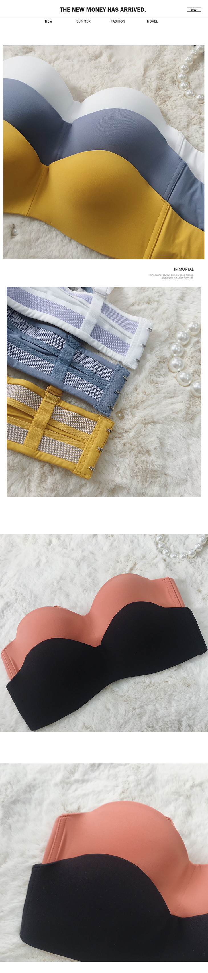 张心子无肩带防滑小胸聚拢内衣少女无钢圈文胸一片式无痕性感胸罩 042712