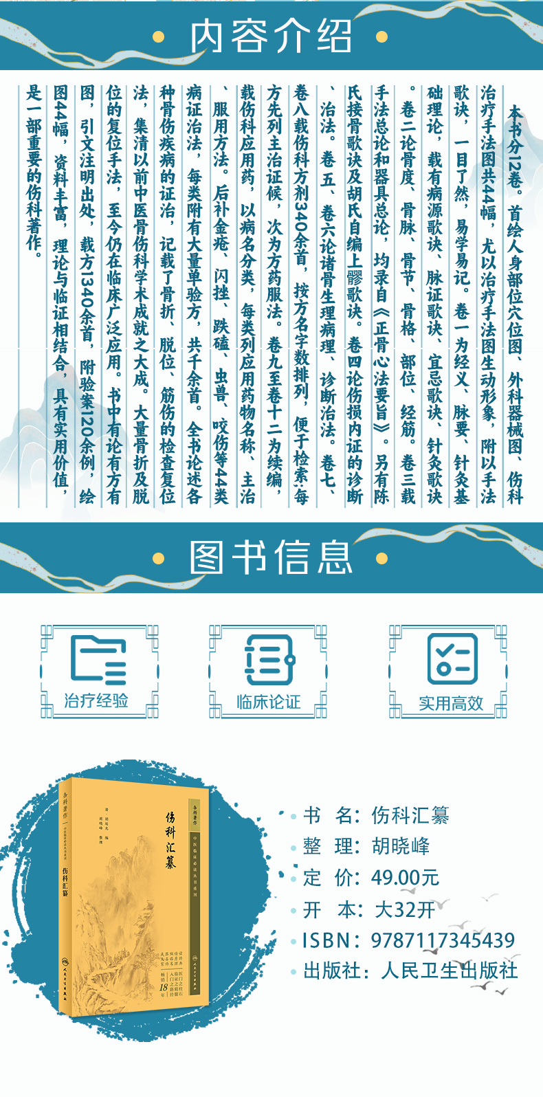 新版 伤科汇纂 中医临床必读丛书重刊 清 胡廷光编 胡晓峰整理 人民卫生出版社 中医骨科古籍 简体白文本口袋书 9787117345439