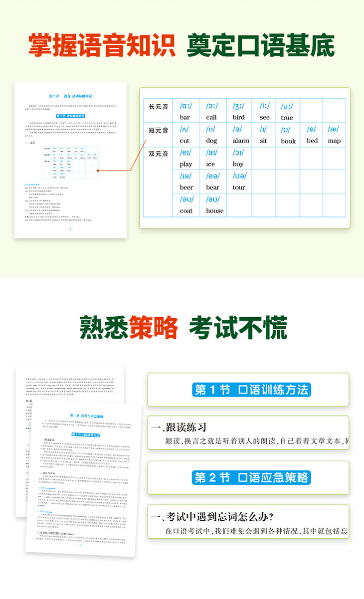 1. 详细讲解国际音标以及升降调、重读、连读等英语语音语调知识,帮助考生强化语音基础,练就纯正英语口语;