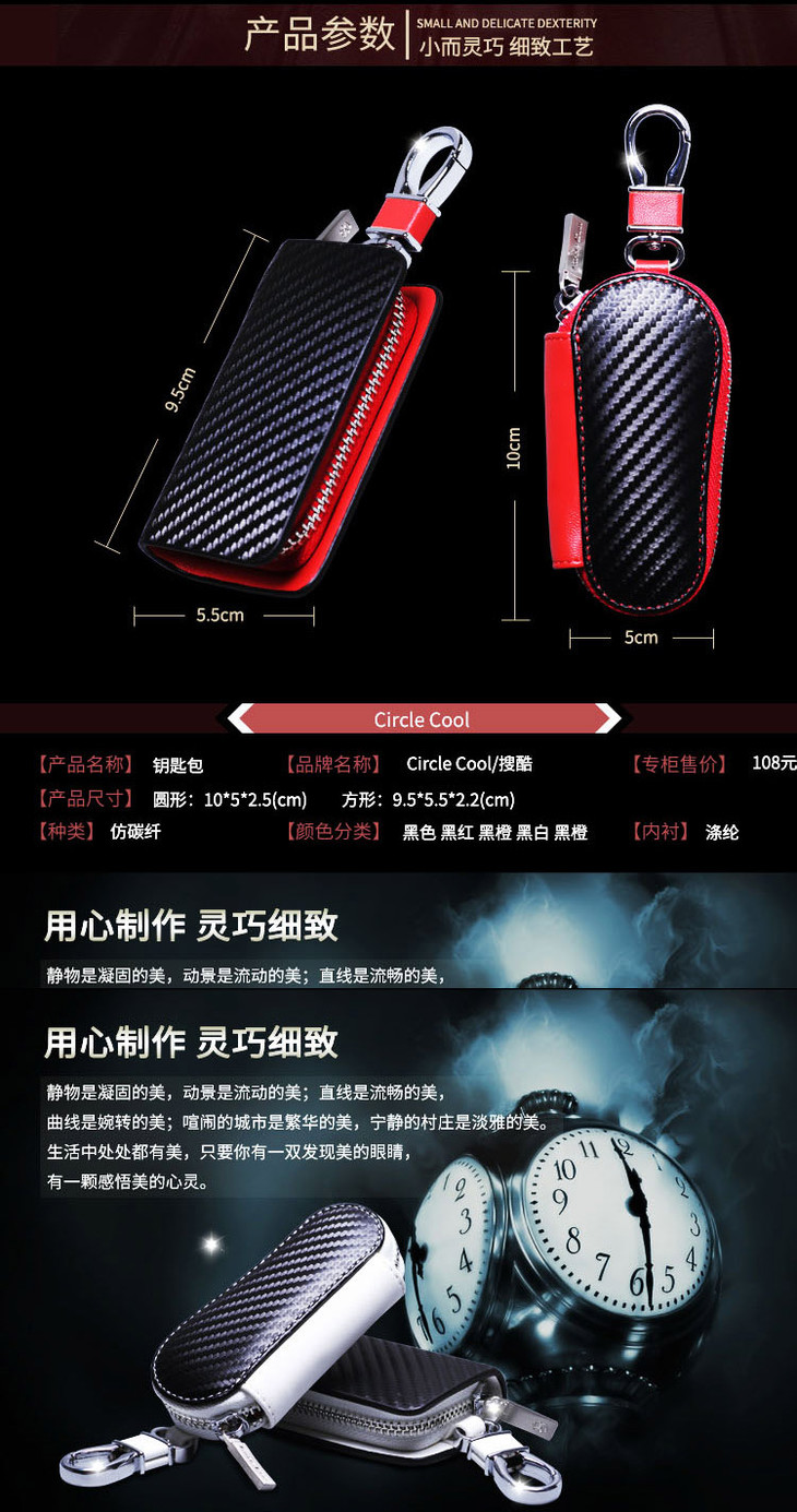【汽车配饰】.汽车通用钥匙包碳纤纹多色时尚全包锁匙包
