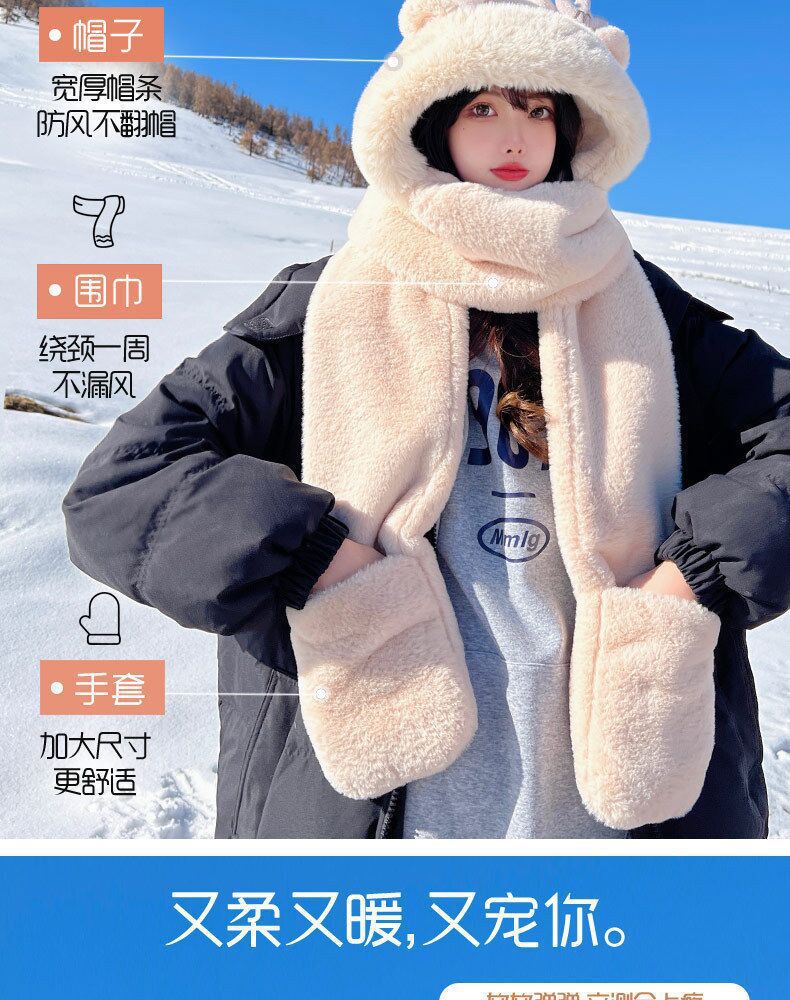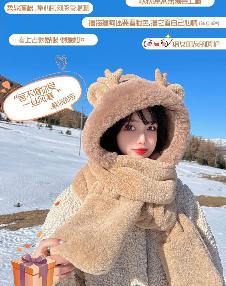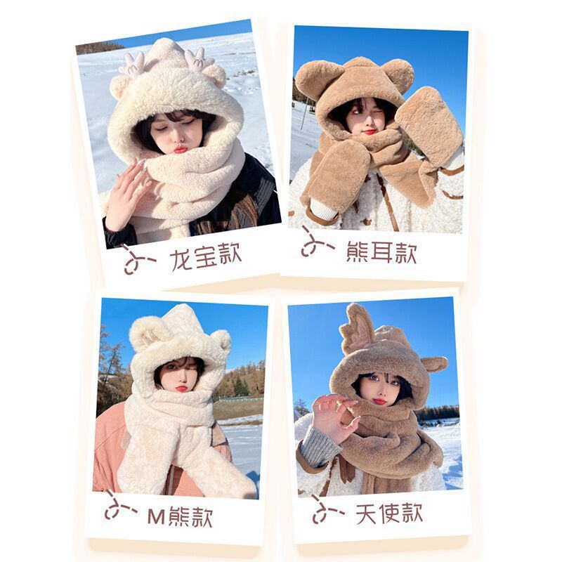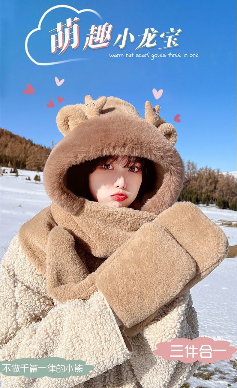 【萌趣小龙宝!帽子围巾三件套】冬季新款龙宝鹿角帽子围巾三件套加厚保暖毛绒帽子一体帽保暖围脖。ry