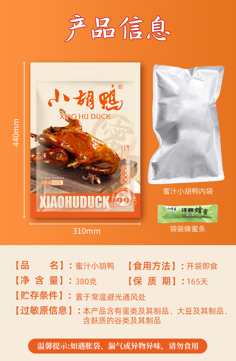小胡鸭蜜汁整鸭380g全鸭卤味