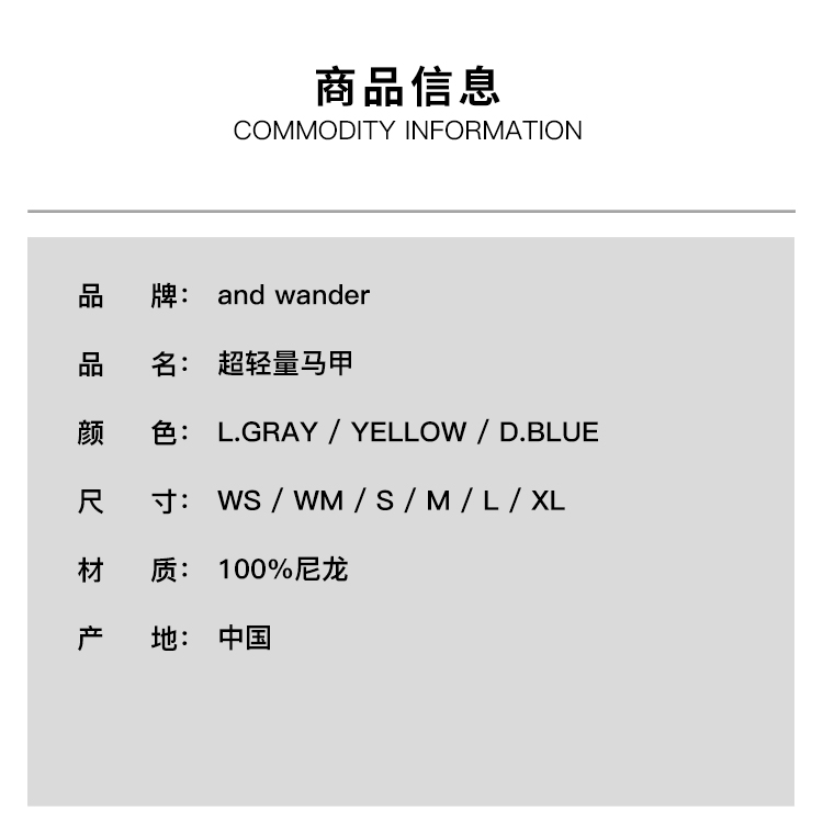 and wander PERTEX wind 男女户外机能性专业防水防风超轻量马甲