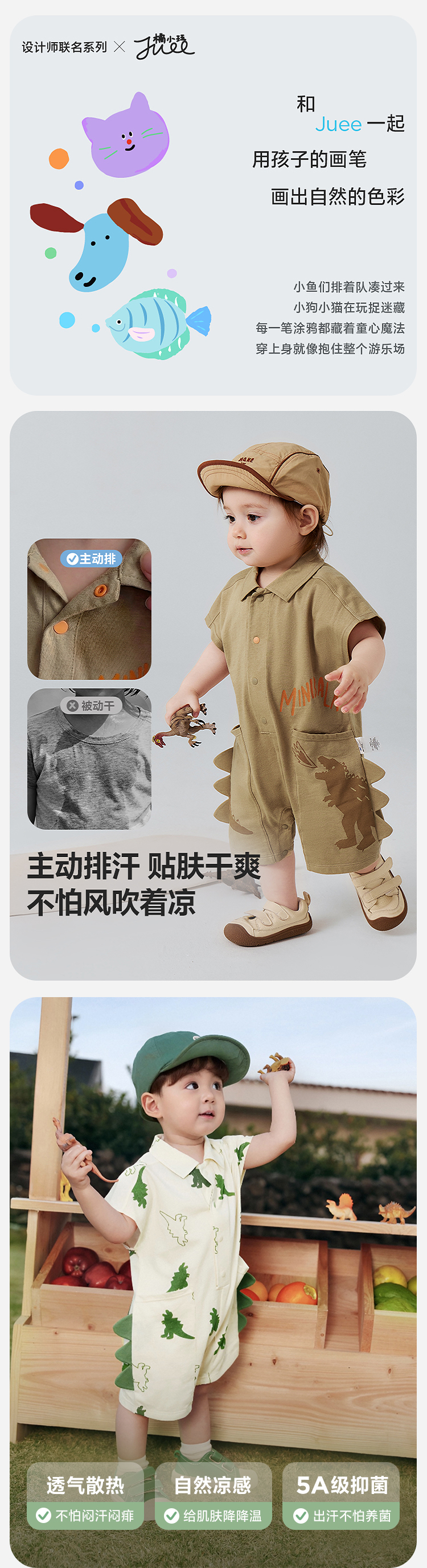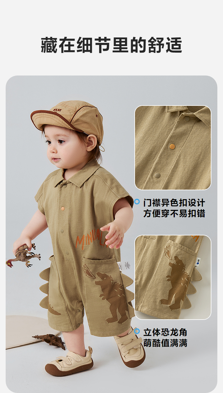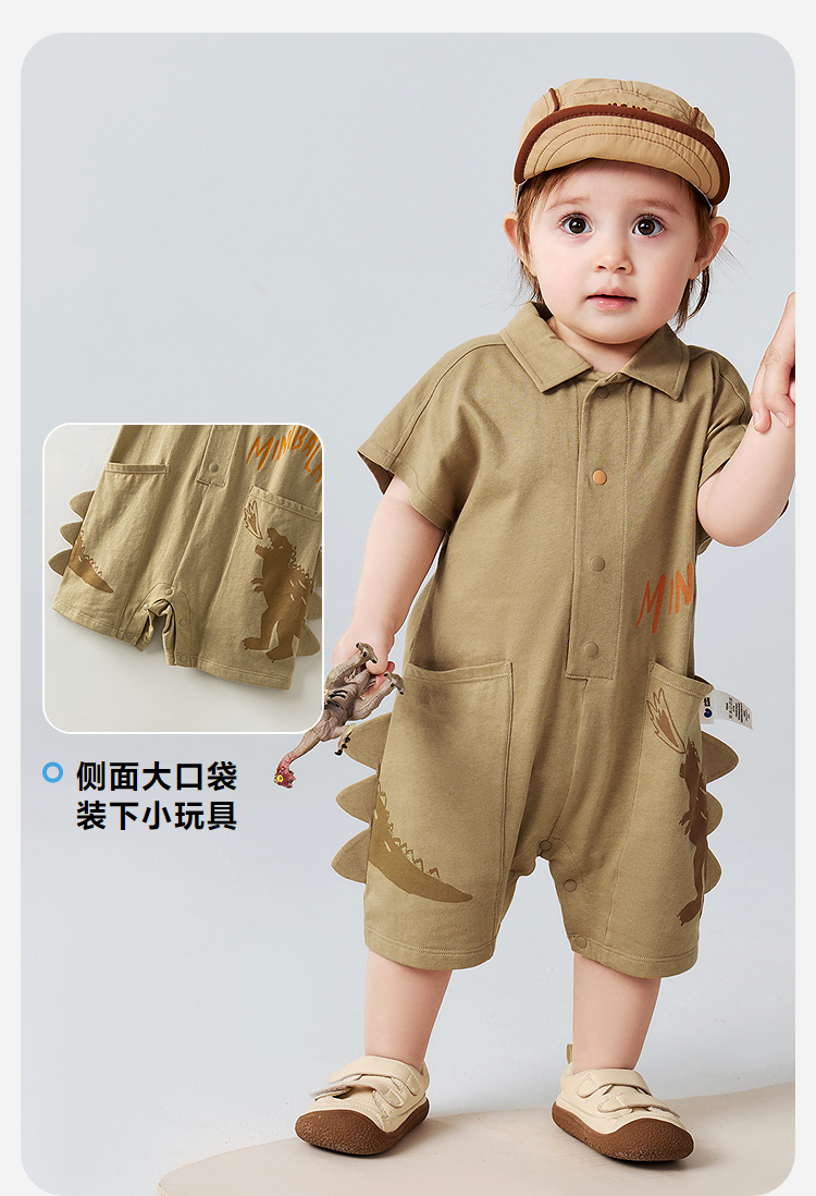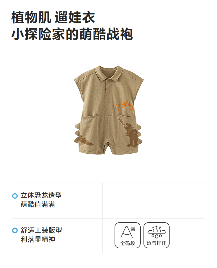 迷你巴拉婴儿连体衣亲肤排汗速干抑菌恐龙萌趣男宝宝衣服26夏新品
