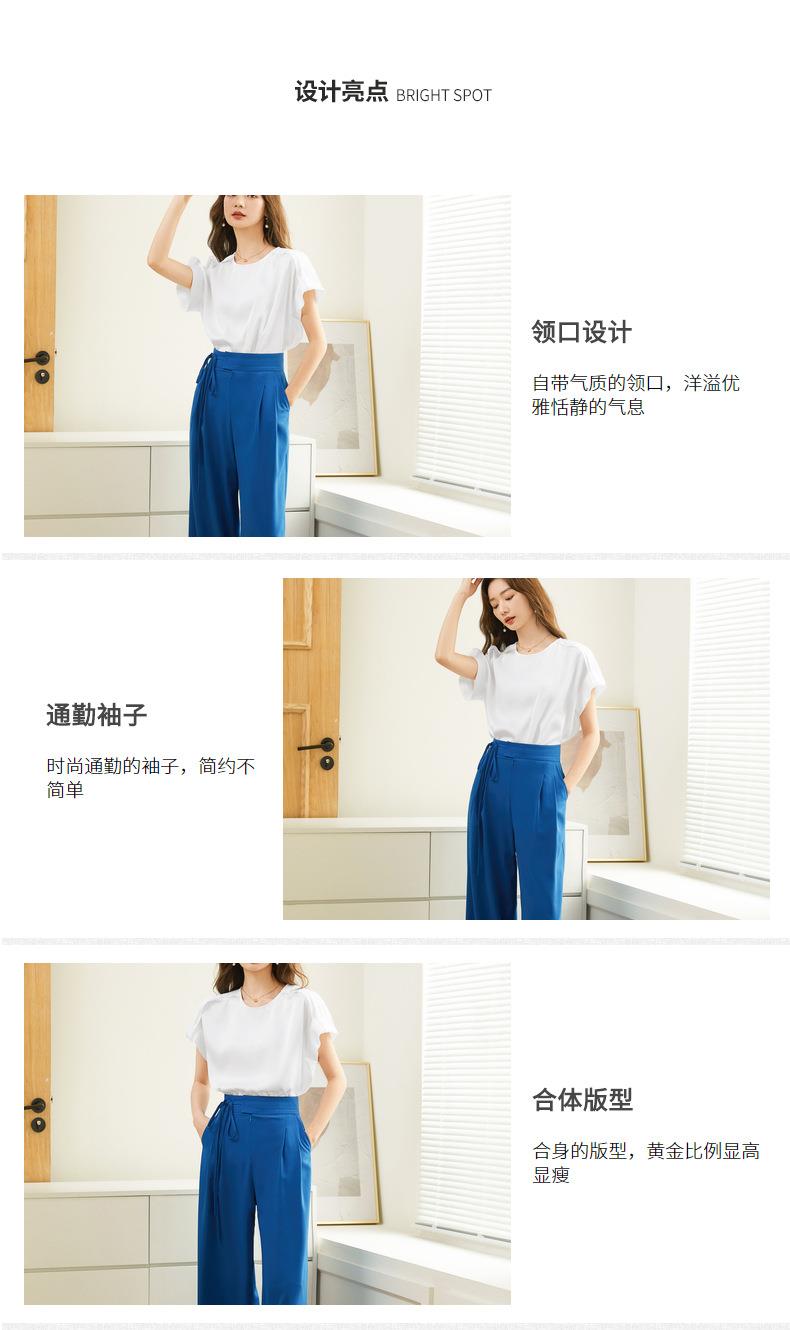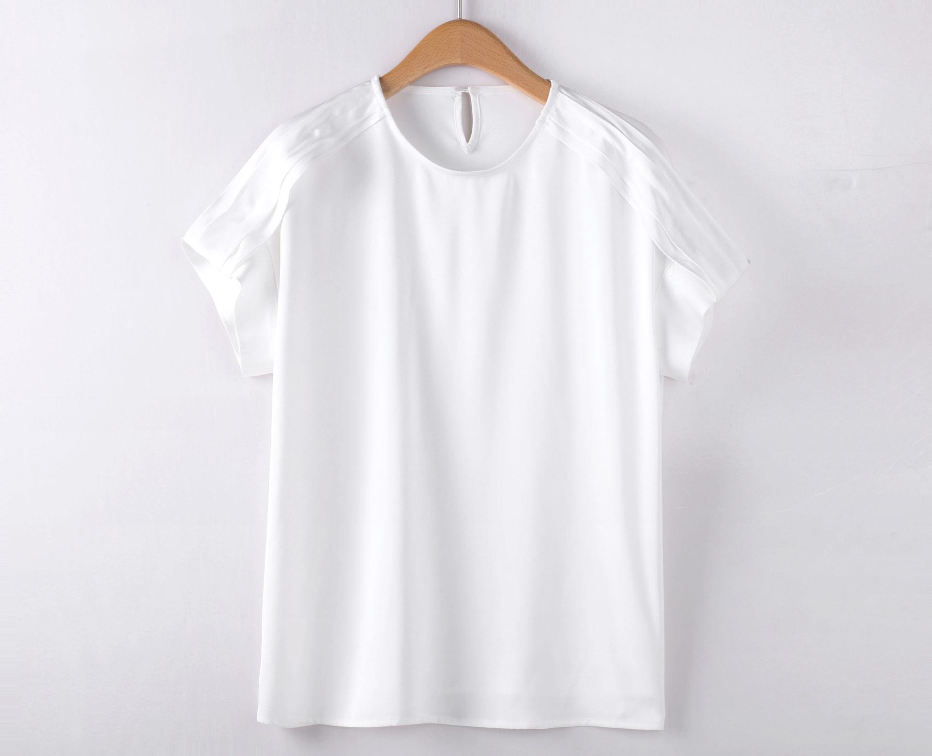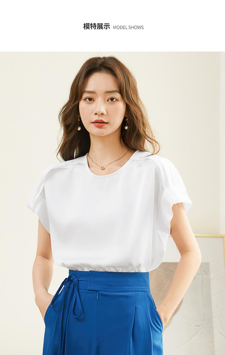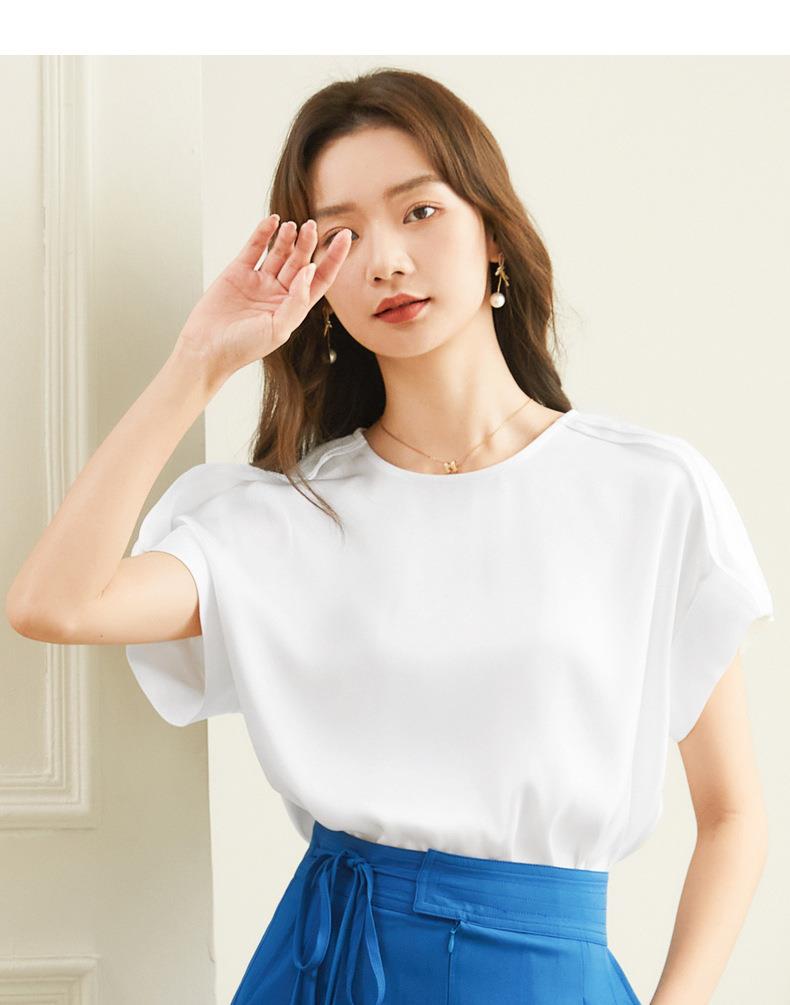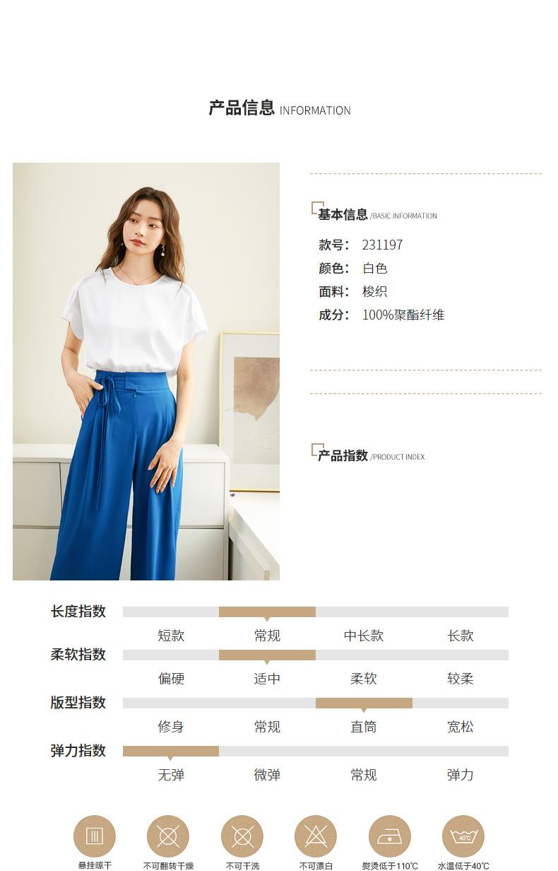 百姿 简约套头雪纺衫2023夏季新款休闲圆领百搭短袖T恤女231197