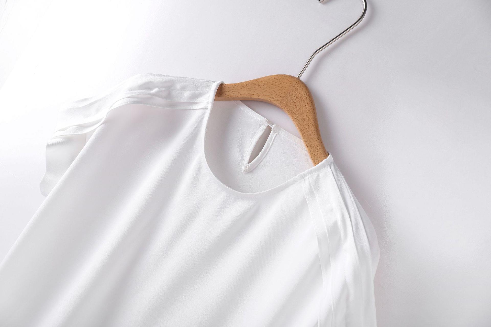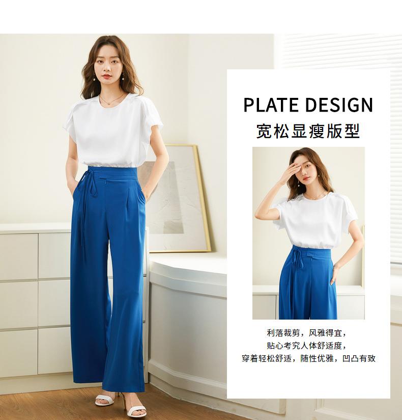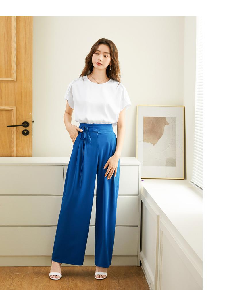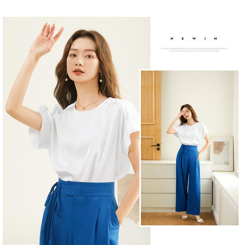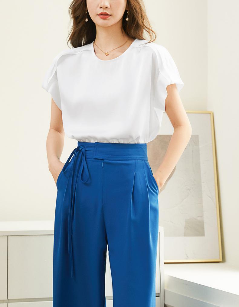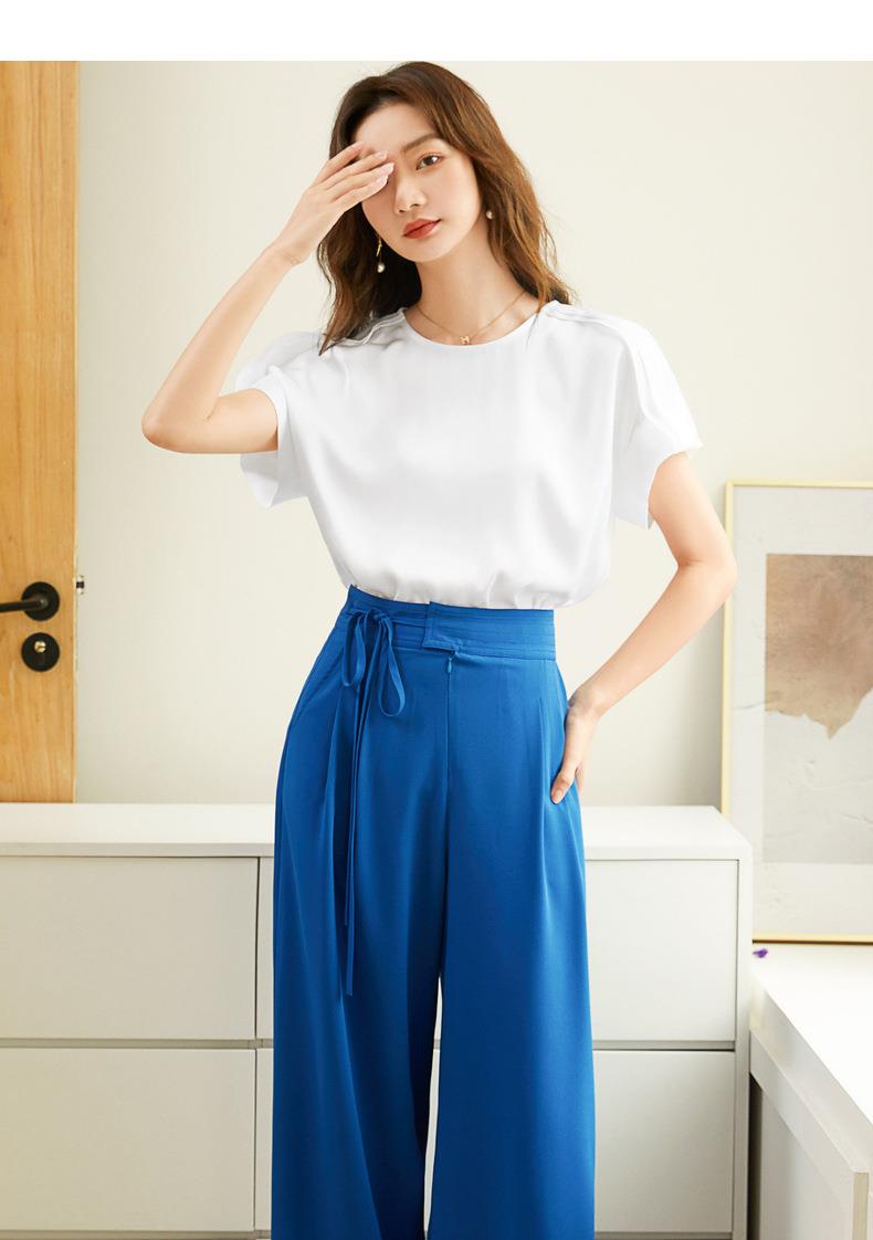 百姿 简约套头雪纺衫2023夏季新款休闲圆领百搭短袖T恤女231197