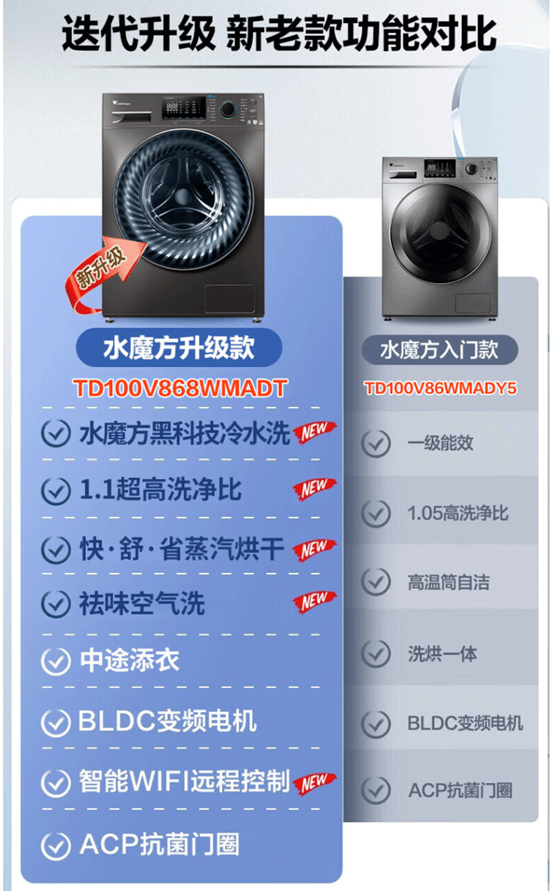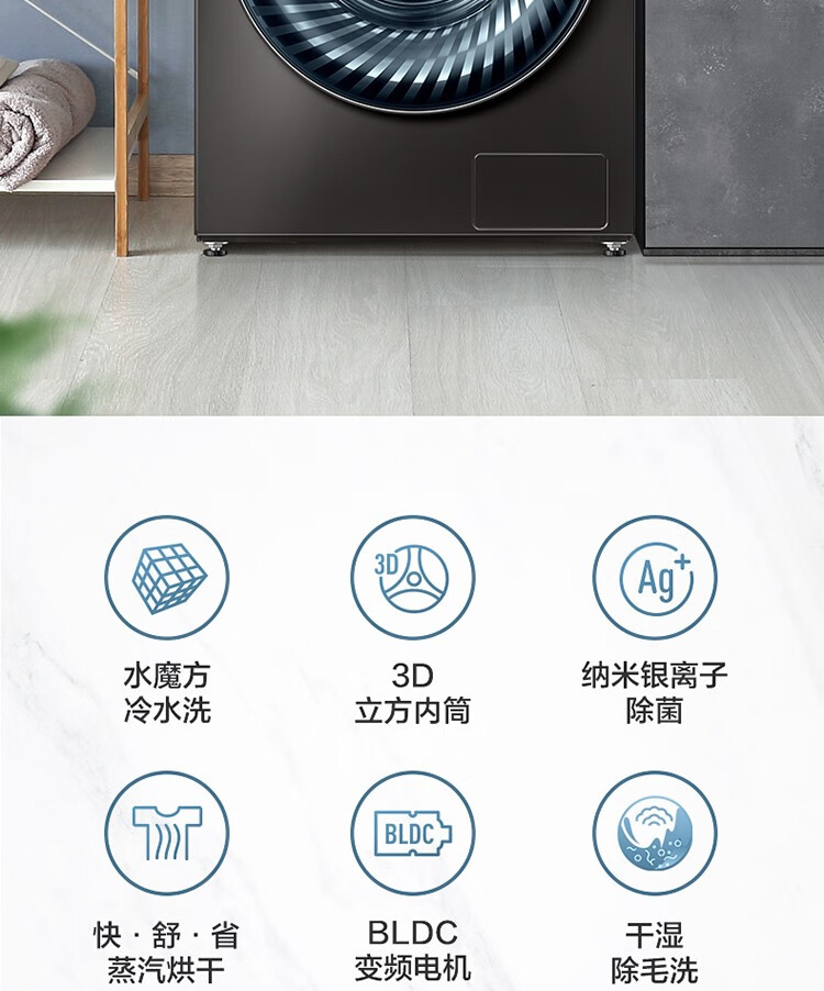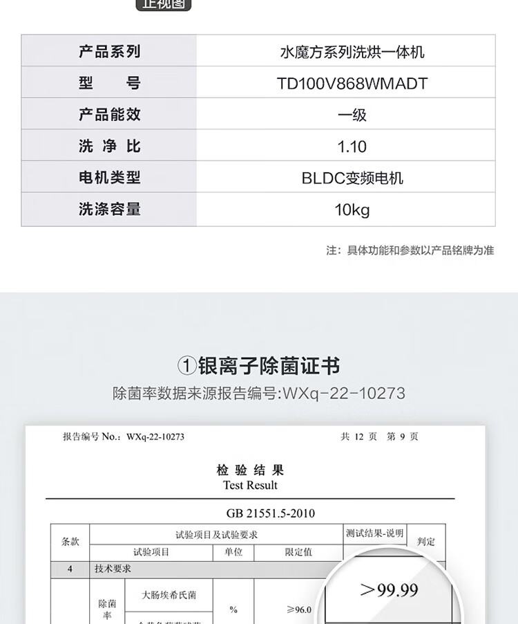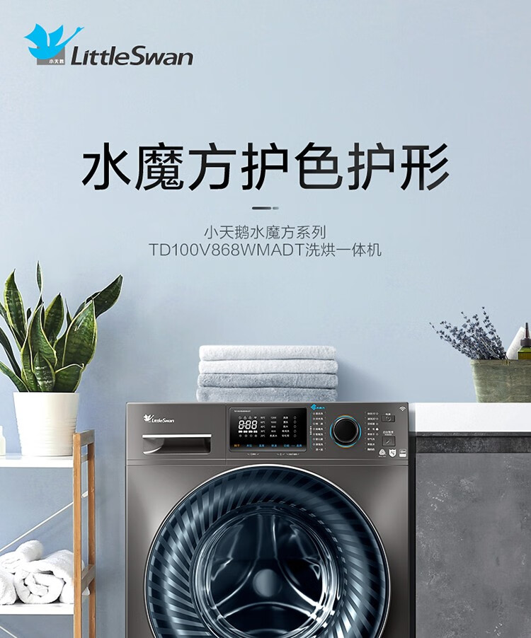 小天鹅(LittleSwan)水魔方系列滚筒洗衣机全自动10公斤洗烘一体机带烘干大容量智能变频水魔方v868 防缠绕护色护形除菌1.1洗净比 TD100V868WMADT