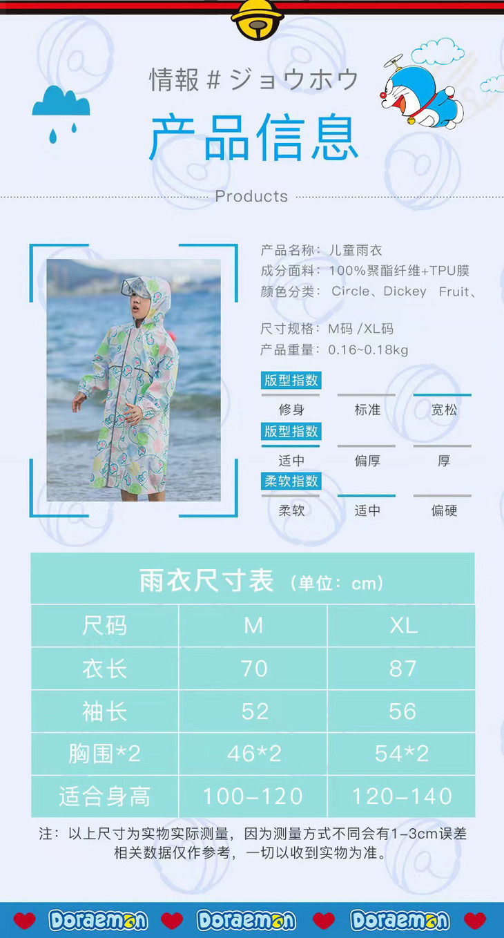 强大的品牌影响力: 多啦A梦作为全球知名的动漫形象,拥有广泛的粉丝群体和强大的品牌影响力。 多啦A梦的形象可爱、温馨,能够触动人们的童年回忆和情感共鸣, 使雨衣与多啦A梦的结合成为市场上备受关注的热门产品。