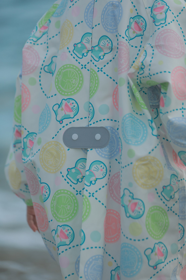 高品质的防雨功能: 多啦A梦的雨衣不仅外观可爱,更重要的是其优秀的防雨功能。 采用高品质的防水材料(破卡面料)和精良的制作工艺, 雨衣能够有效地阻挡雨水渗透,保持身体干爽。 这种高品质的防雨功能得到了消费者的认可和赞赏。
