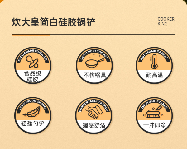 炊大皇 硅胶锅铲不粘锅炒锅煎锅平底锅专用炒菜铲子 耐高温握感舒适