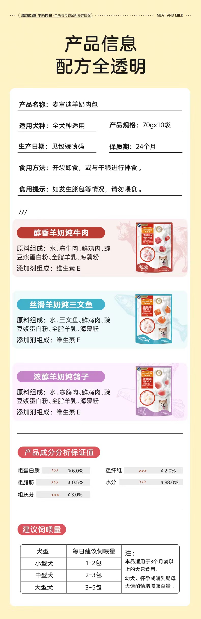 麦富迪狗湿粮羊奶肉粒包拌饭营养增肥补水成幼犬70g*10