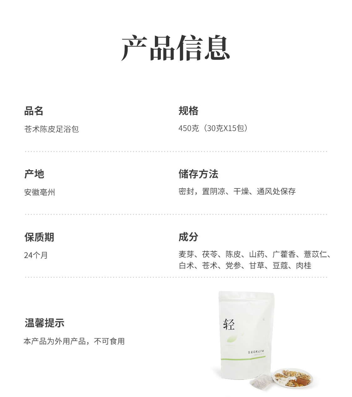 【苍术陈皮足浴包】祛水减湿 身自轻盈原材料泡脚 草本复方 温润足浴 450g(30gX15)