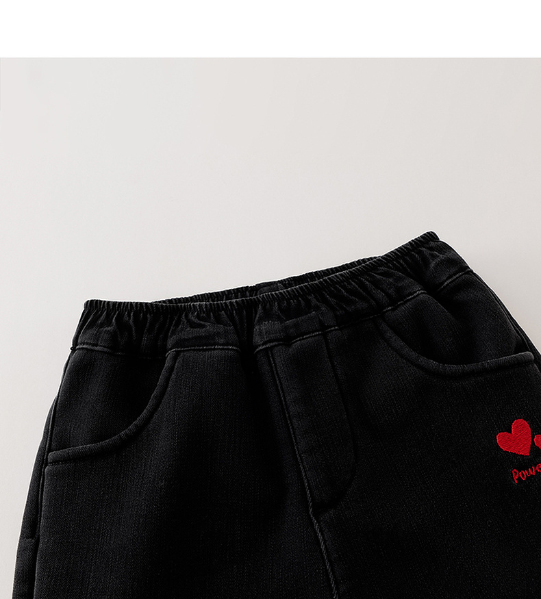 【奥利绒】马克珍妮女童爱心绣花牛仔微喇裤2025年冬装新款551529