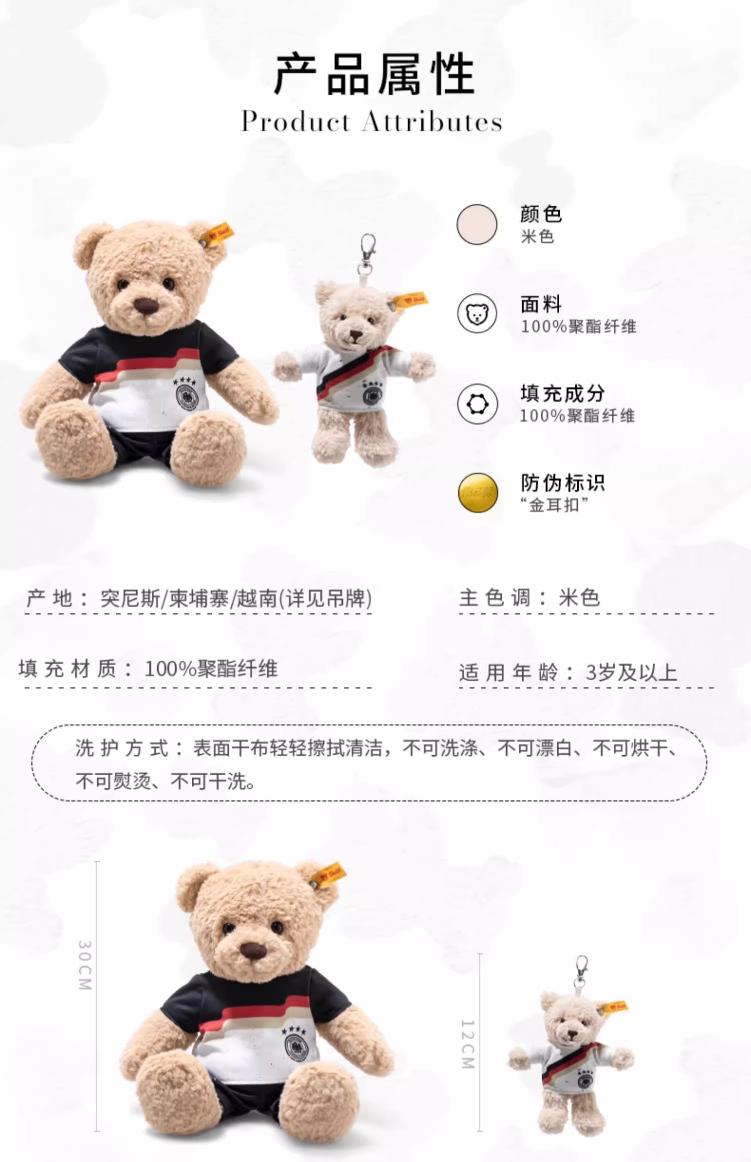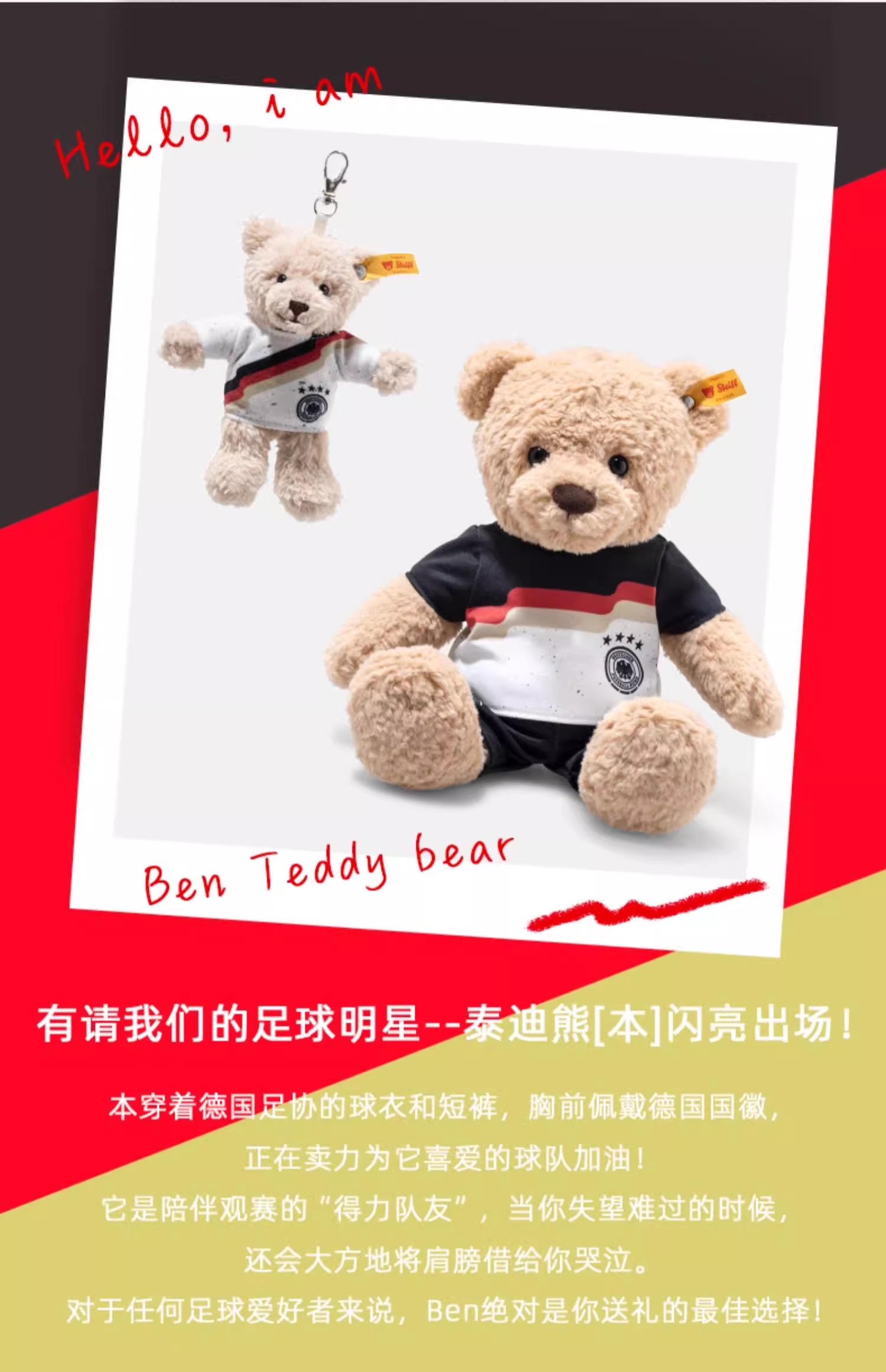 Steiff 史戴芙好朋友系列-德国足球队泰迪熊本吊坠泰迪熊本