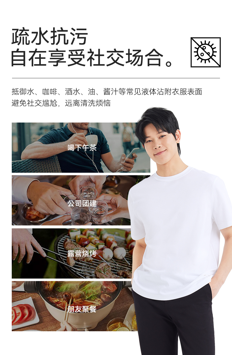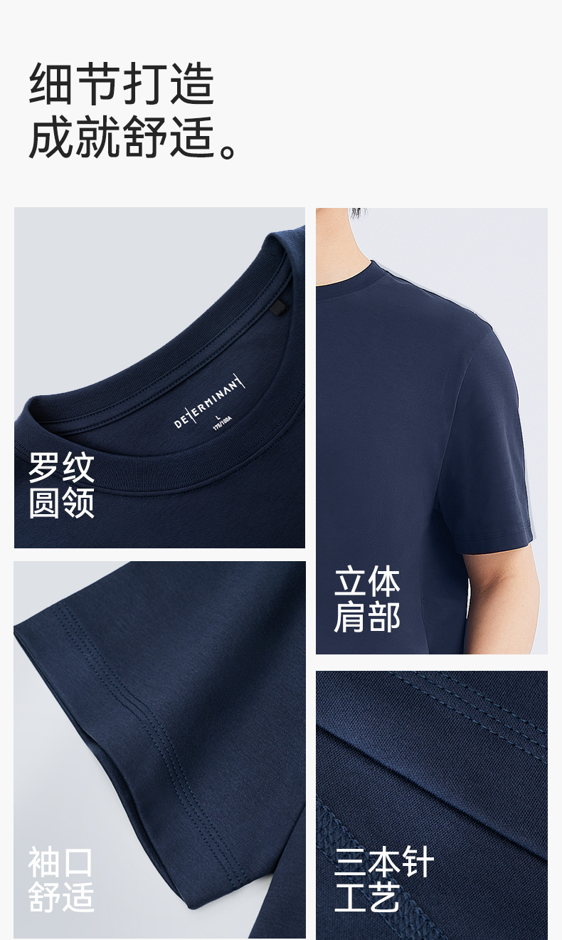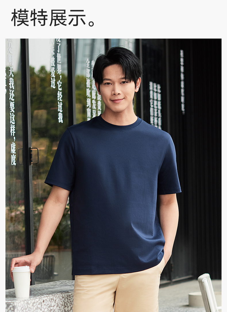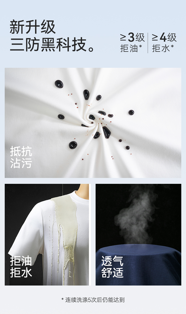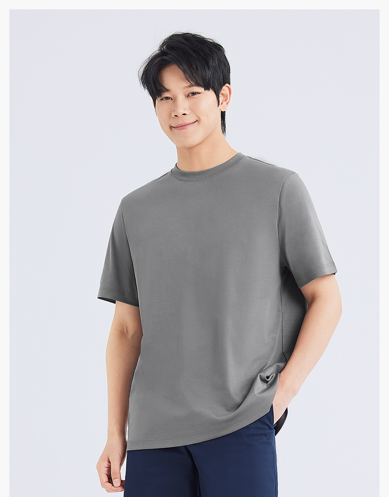 十如仕100%新疆长绒棉拒水拒油拒污黑科技柔软透气圆领短袖T恤-T17-01