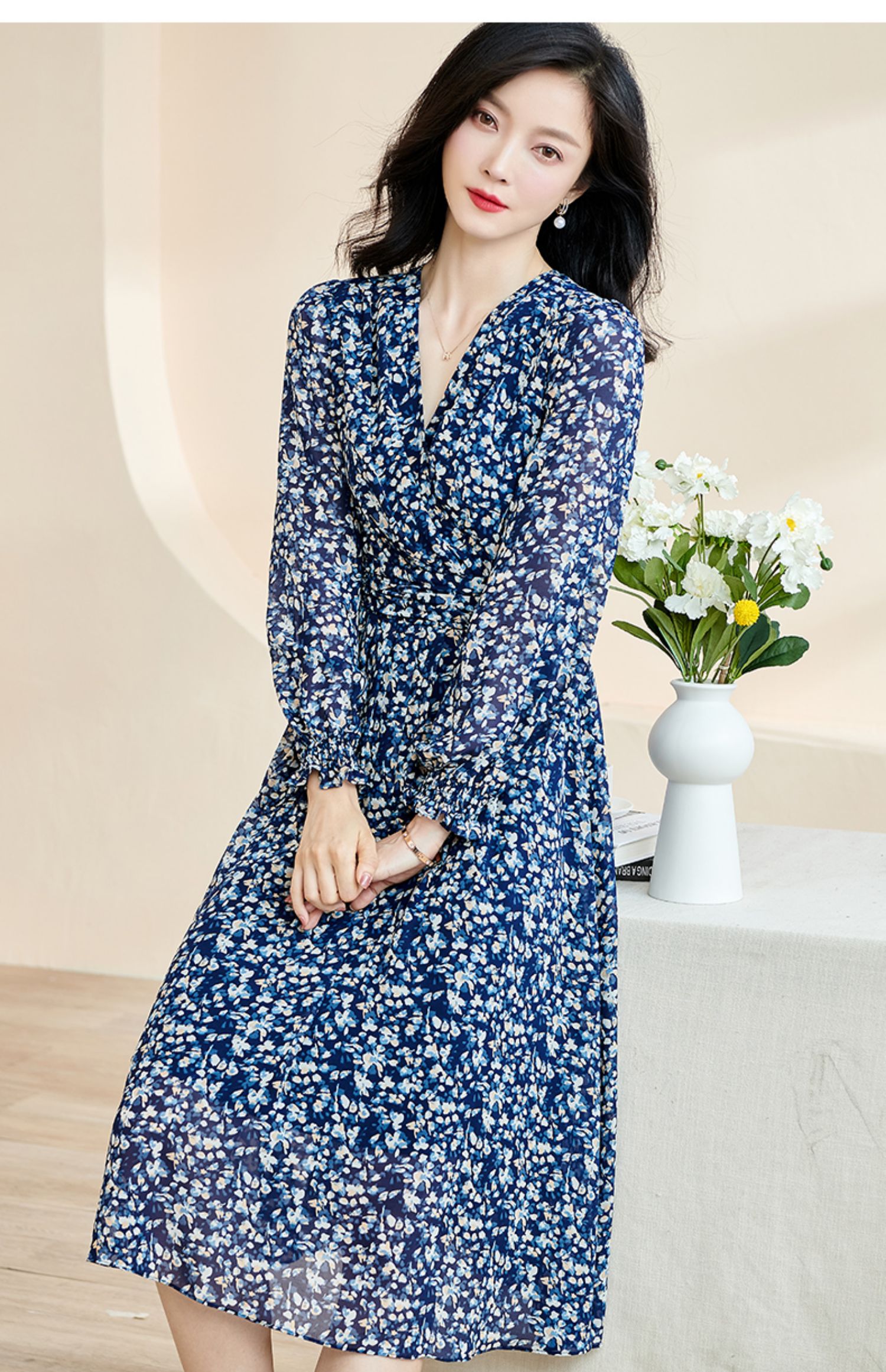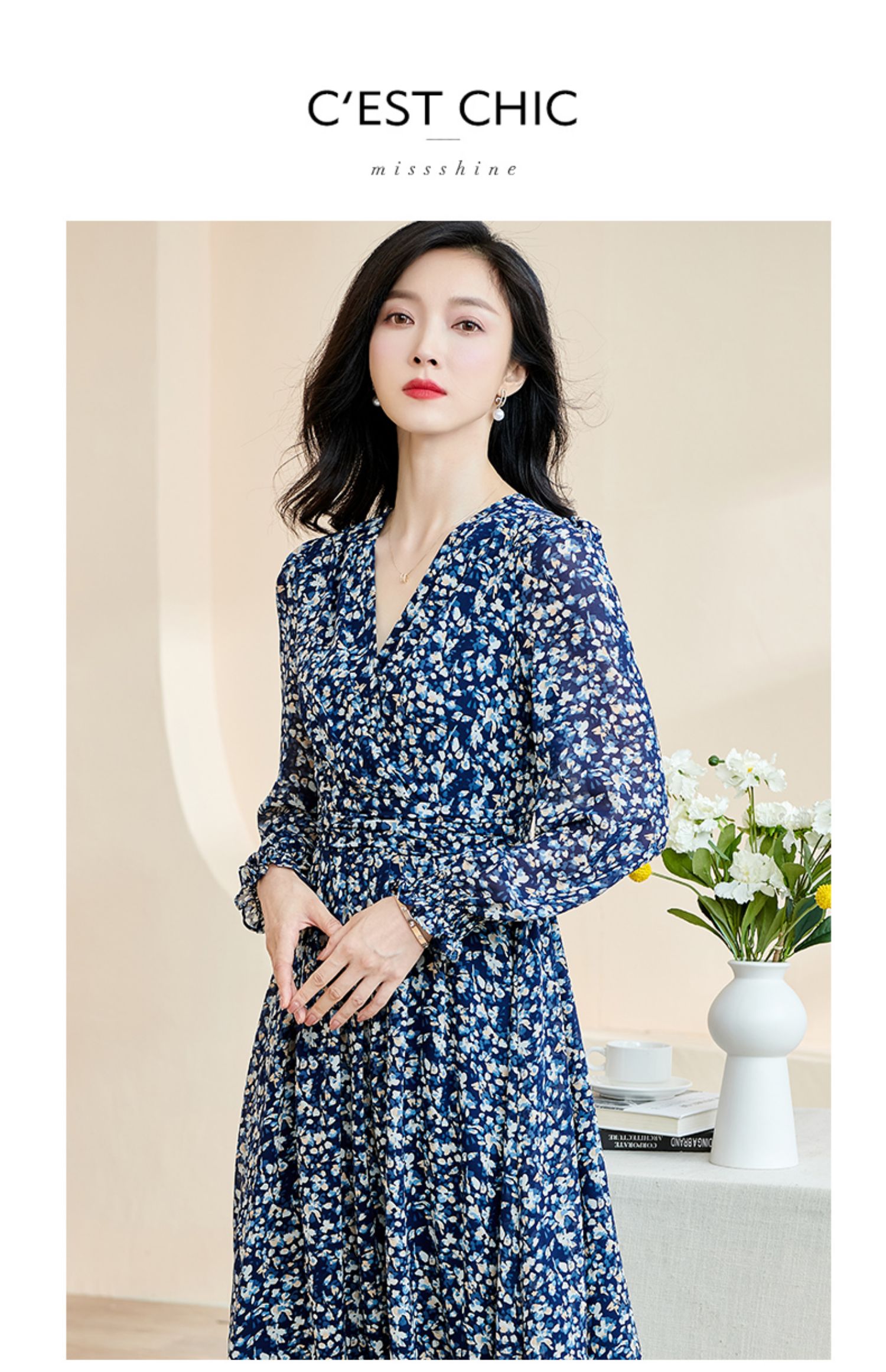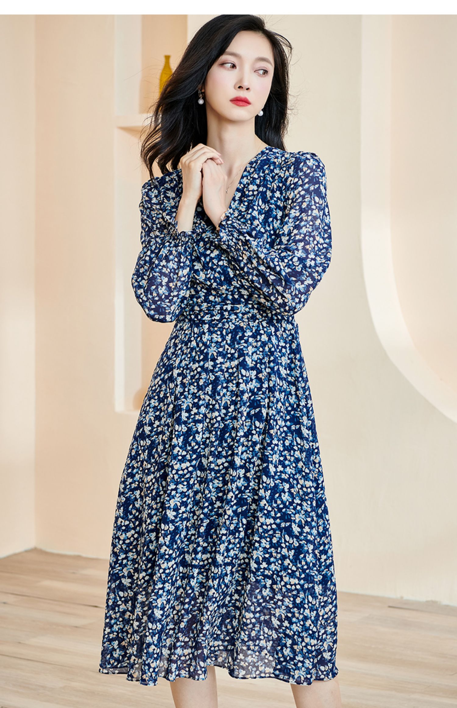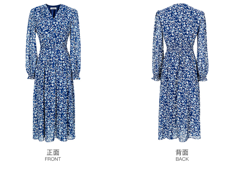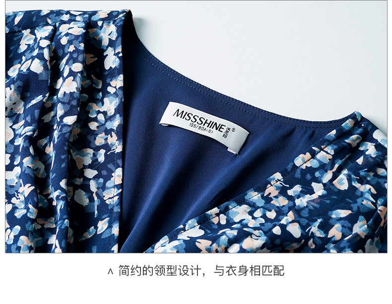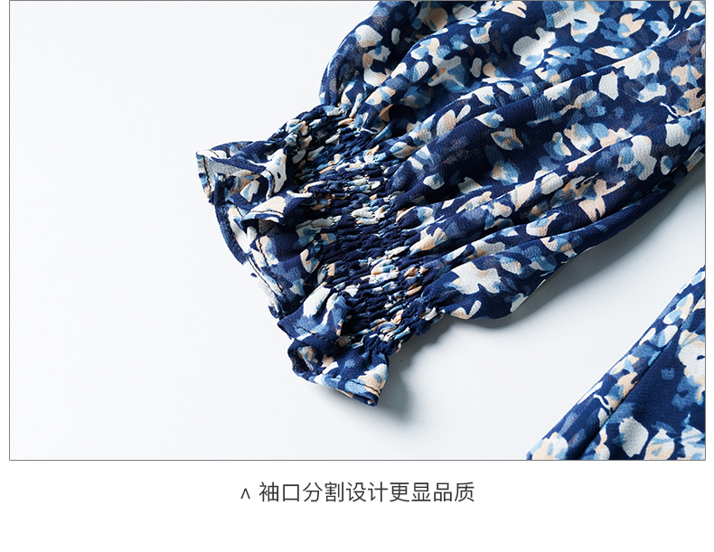剩S 米思阳新款优雅气质碎花连衣裙压褶收腰垂感大摆裙2446