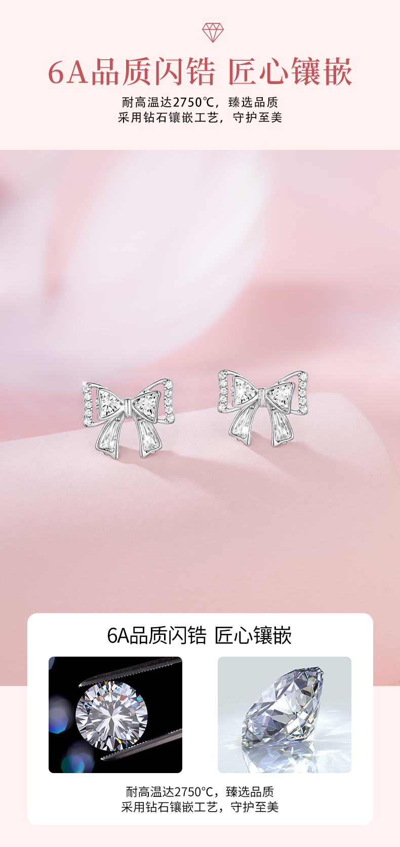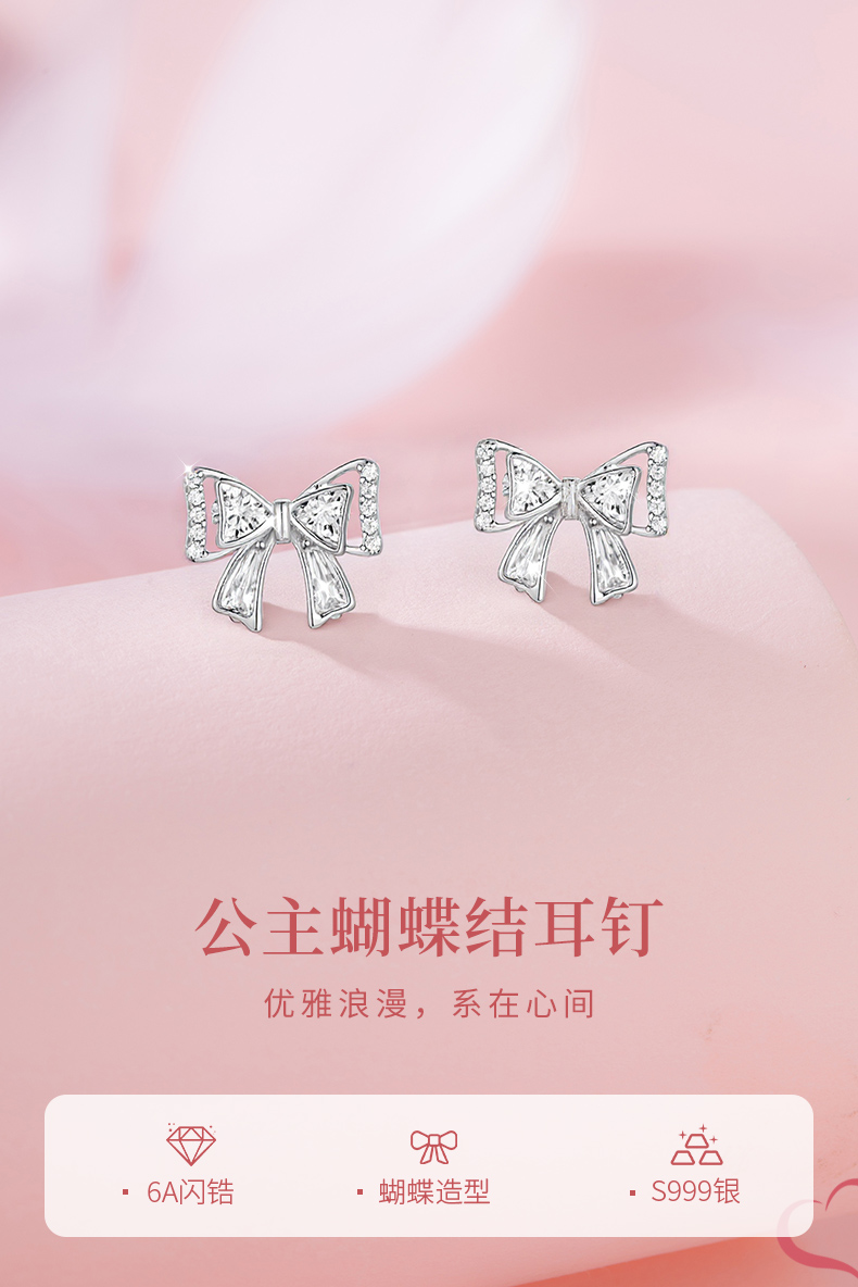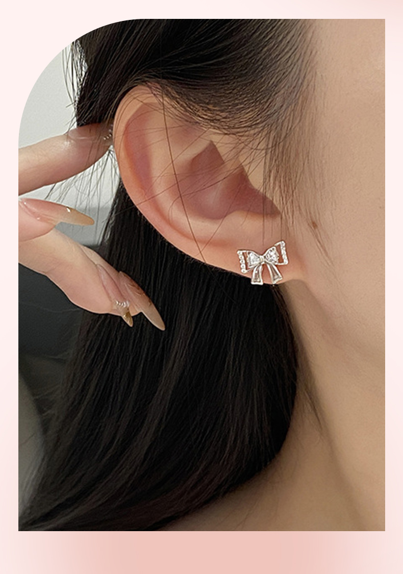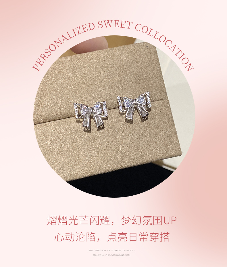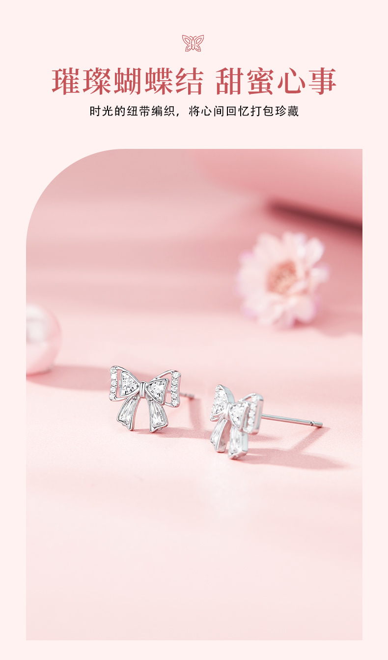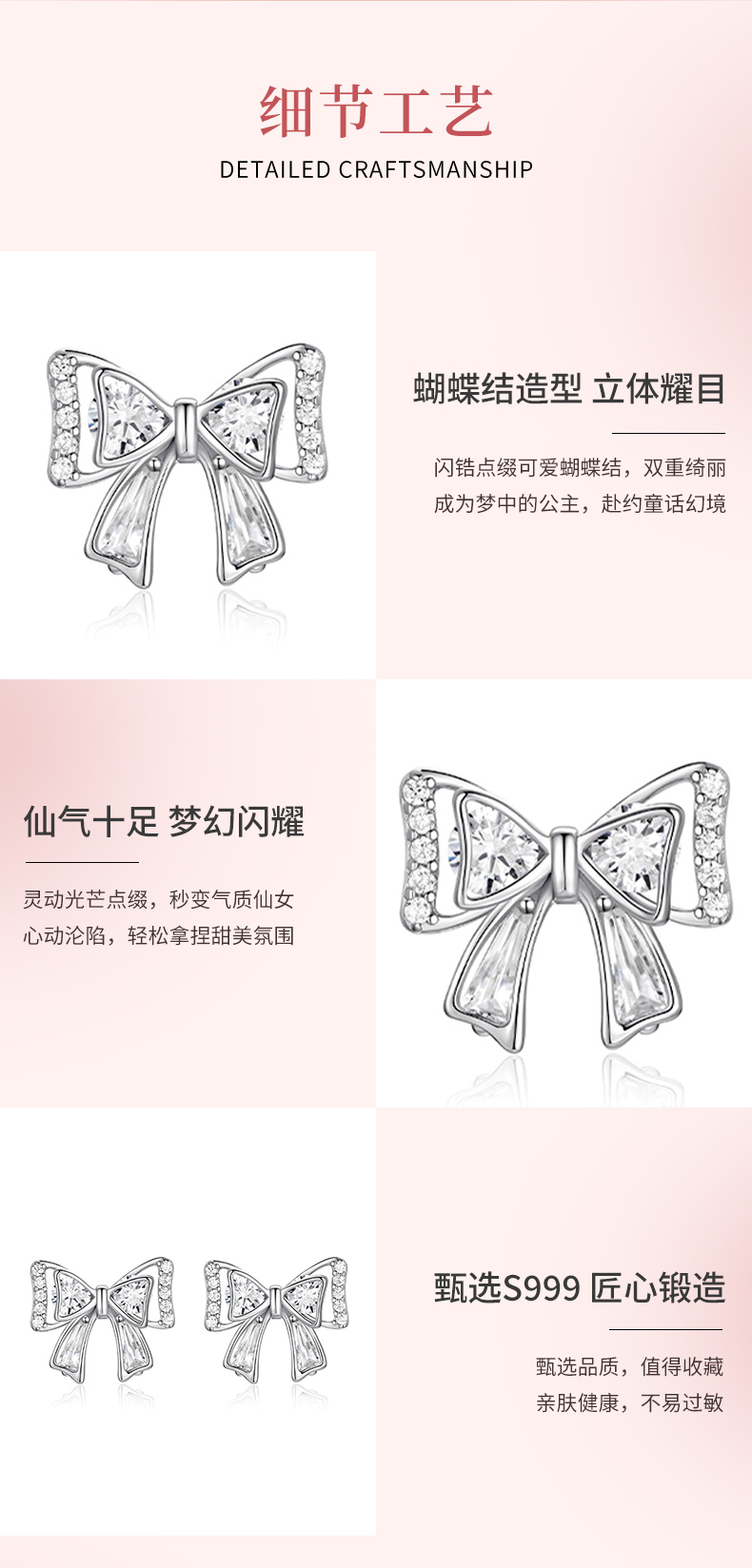 卡蒂罗KADER 公主蝴蝶结耳钉 925银甜美少女璀璨闪耀轻奢小巧闪锆点缀立体设计耳饰 简约百搭双重绮丽