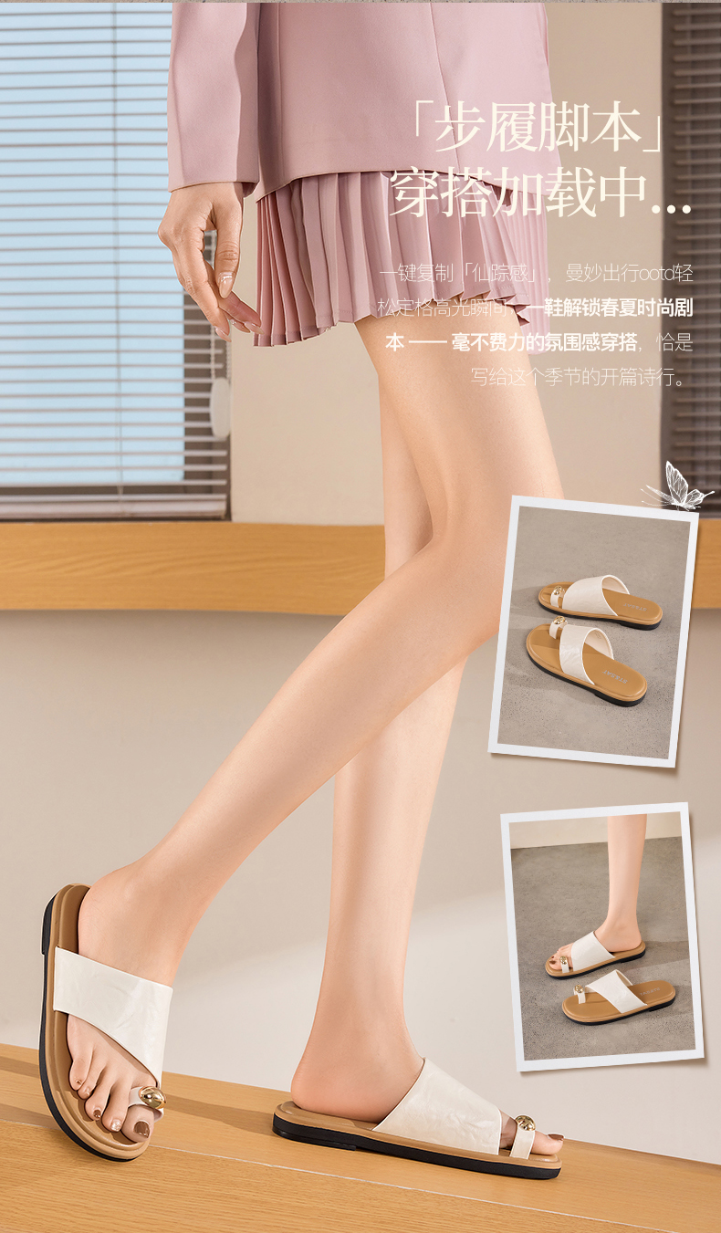 星期六26夏新款时尚简约金属夹趾平底凉拖SSE2110CLG