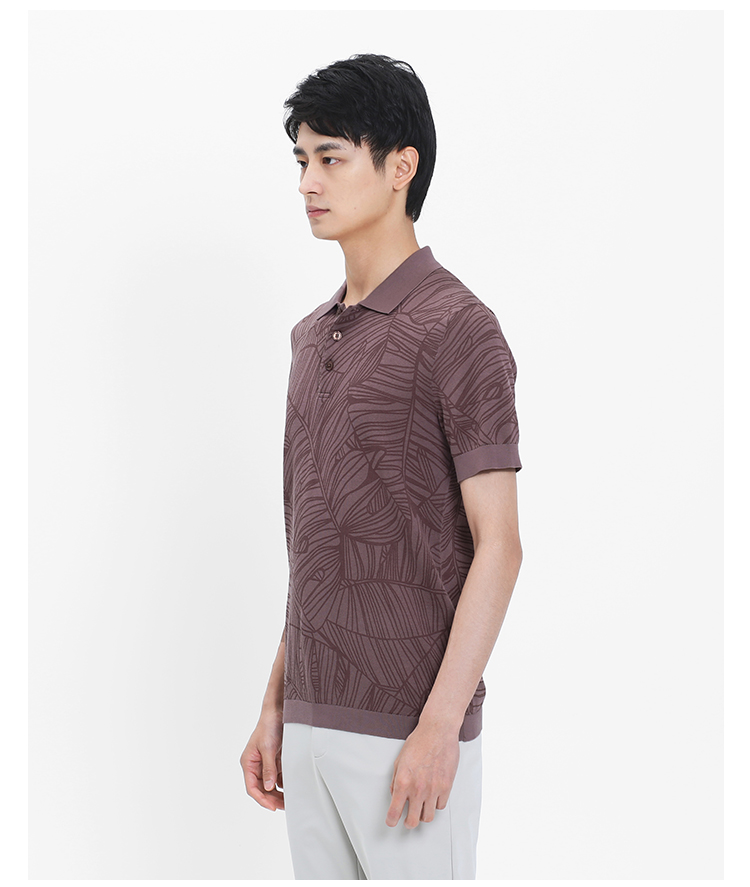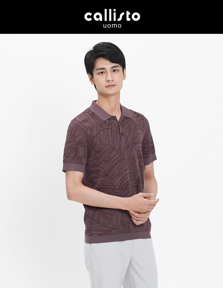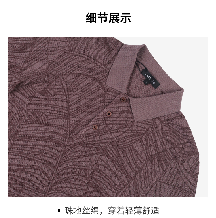 callisto粉红珠地丝棉印花翻领T恤 SRTSS053C