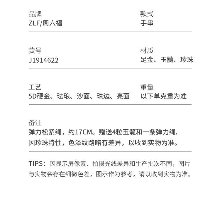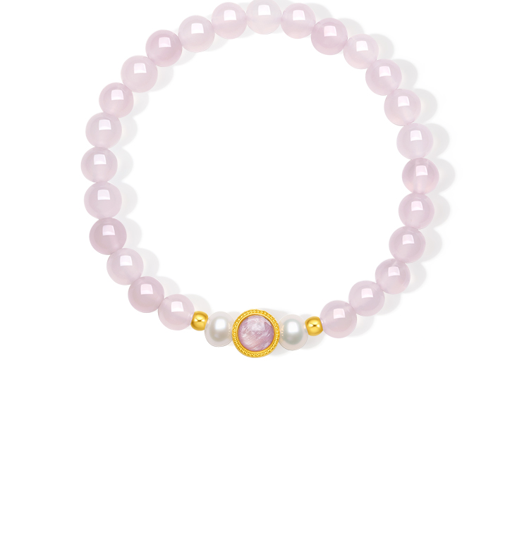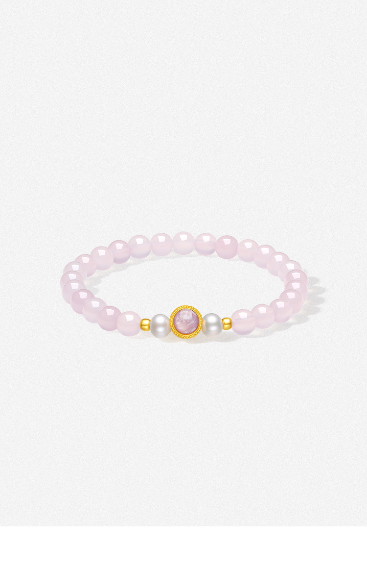 周六福黄金珍珠手串女款5d硬金足金镶嵌玉髓几何珐琅弹力绳手串