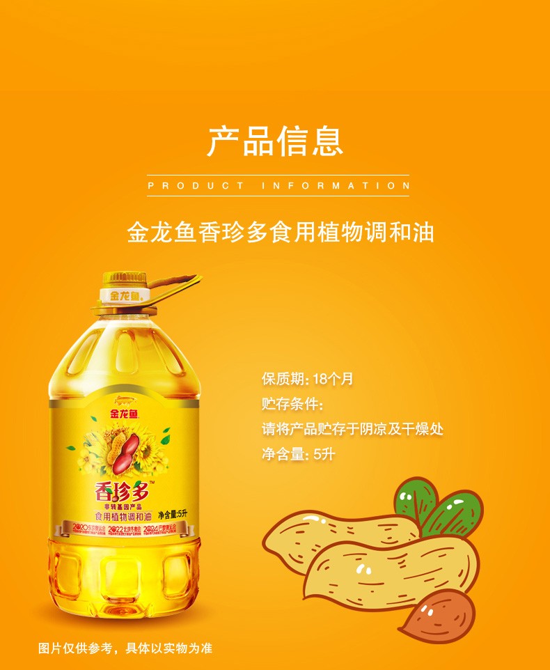 金龙鱼香珍多非转基因食用植物调和油5升