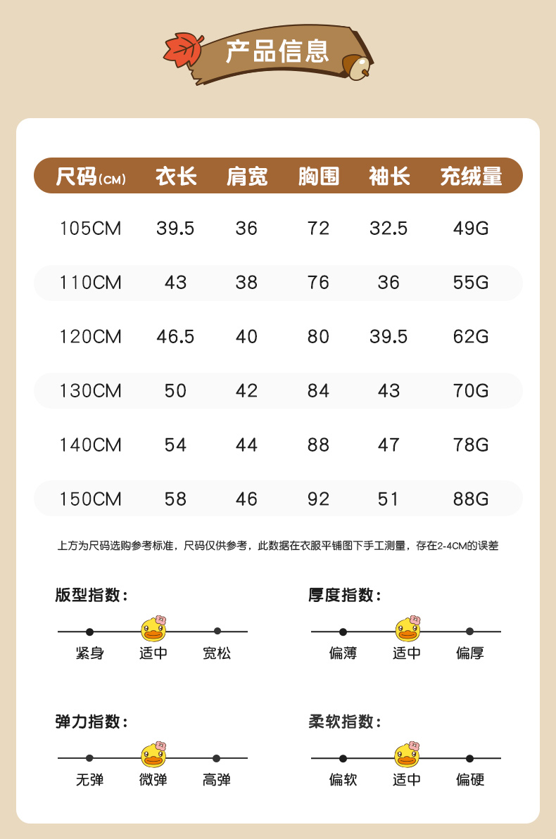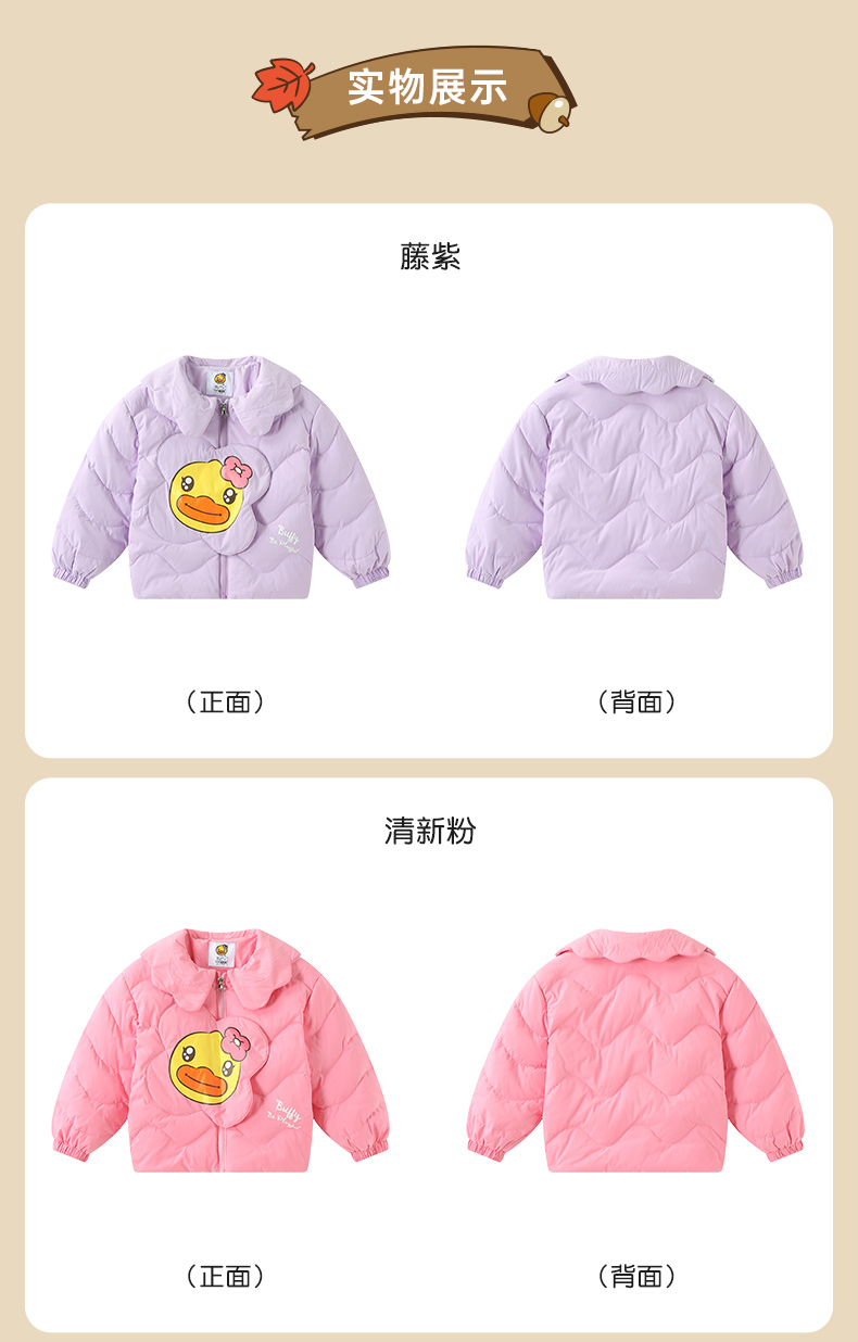 B.Duck小黄鸭儿童保暖羽绒服冬季女童外套 FF5416006