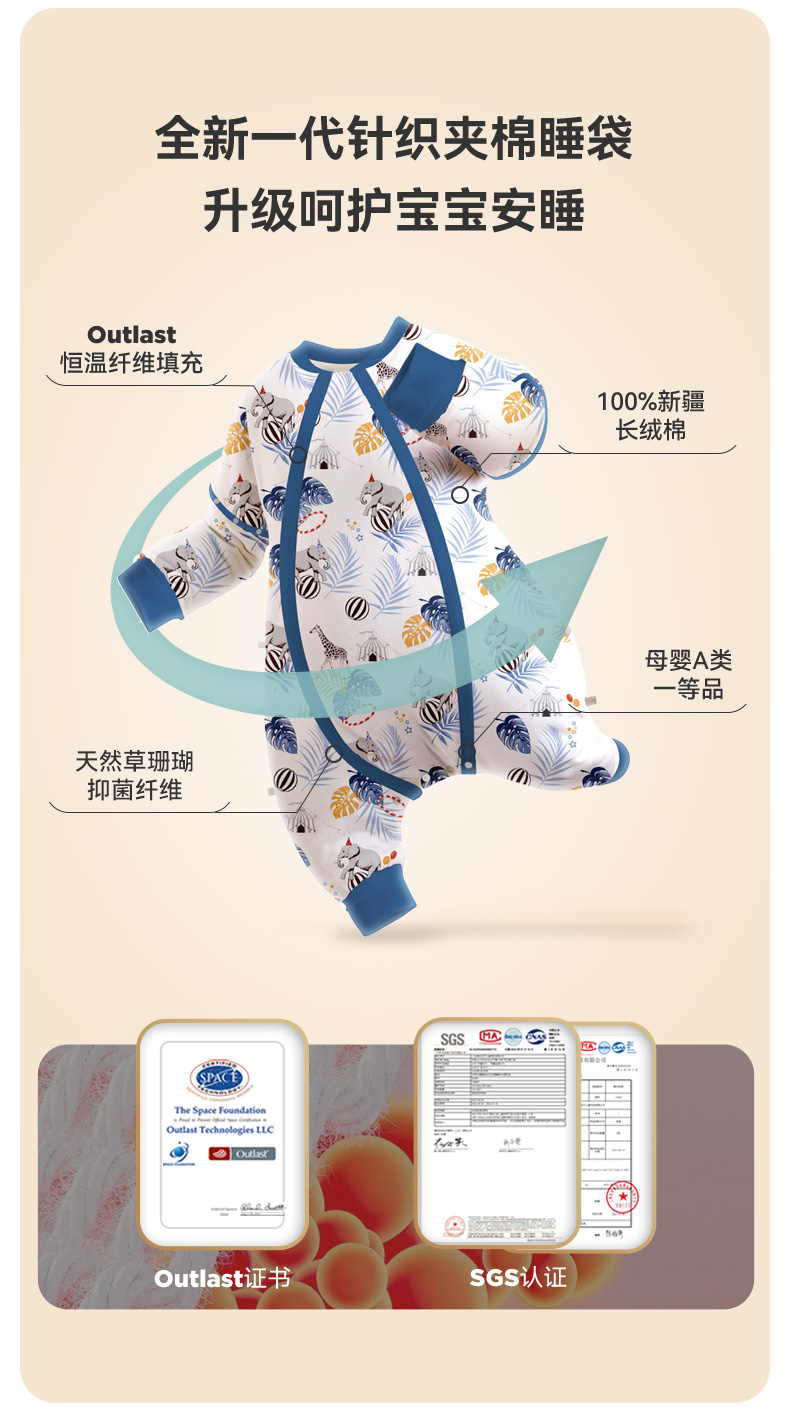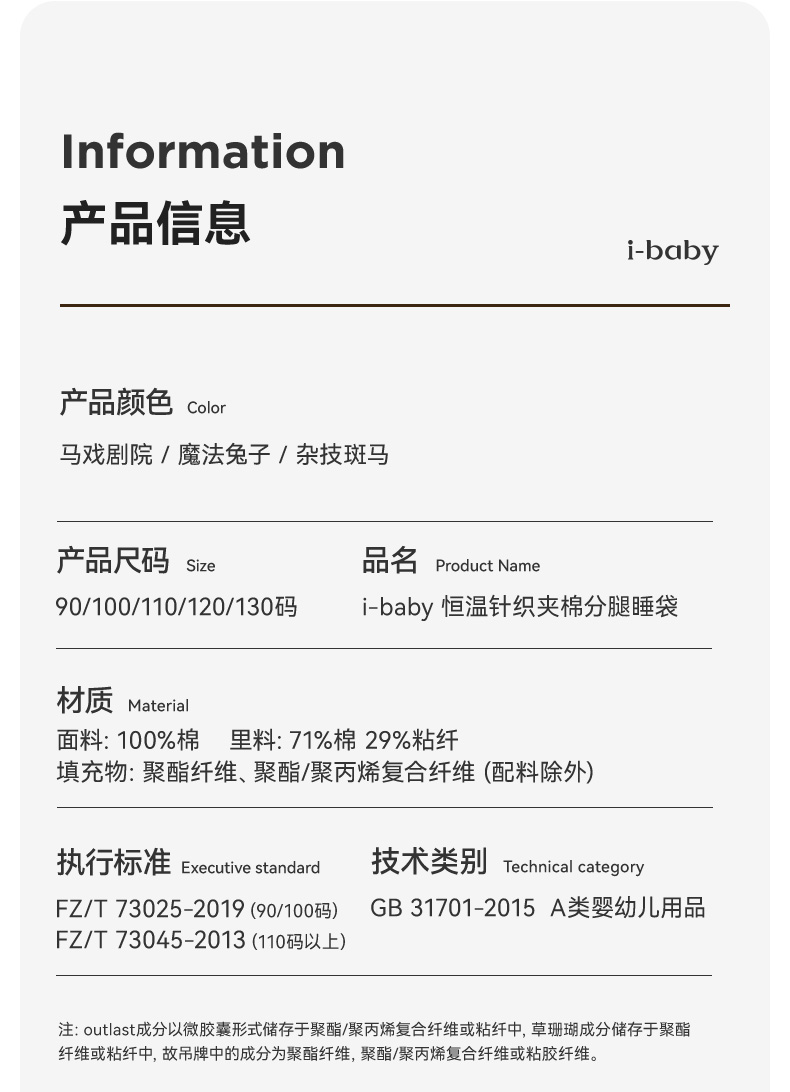 【qhxj】i-baby outlast恒温抗菌针织夹棉分腿睡袋