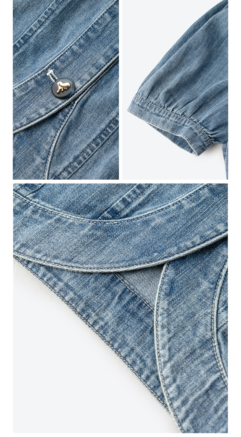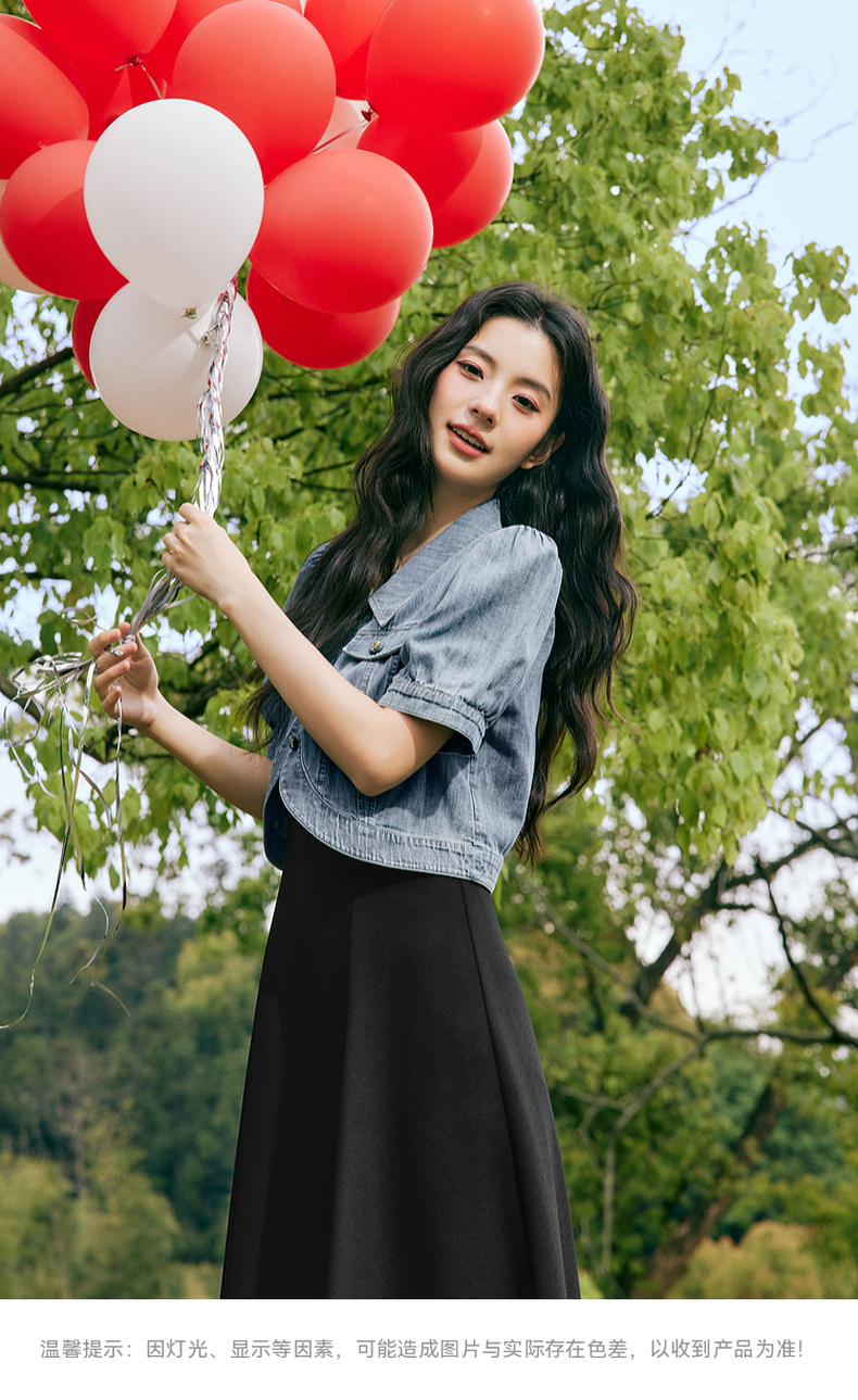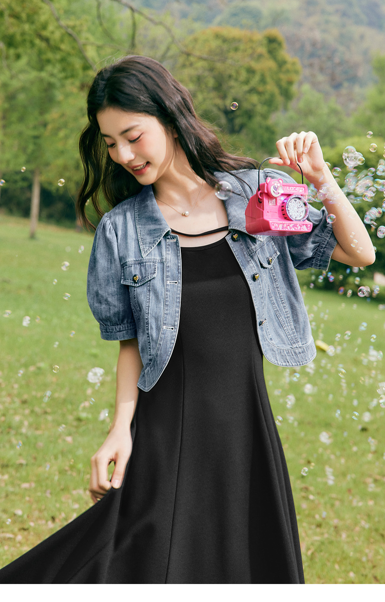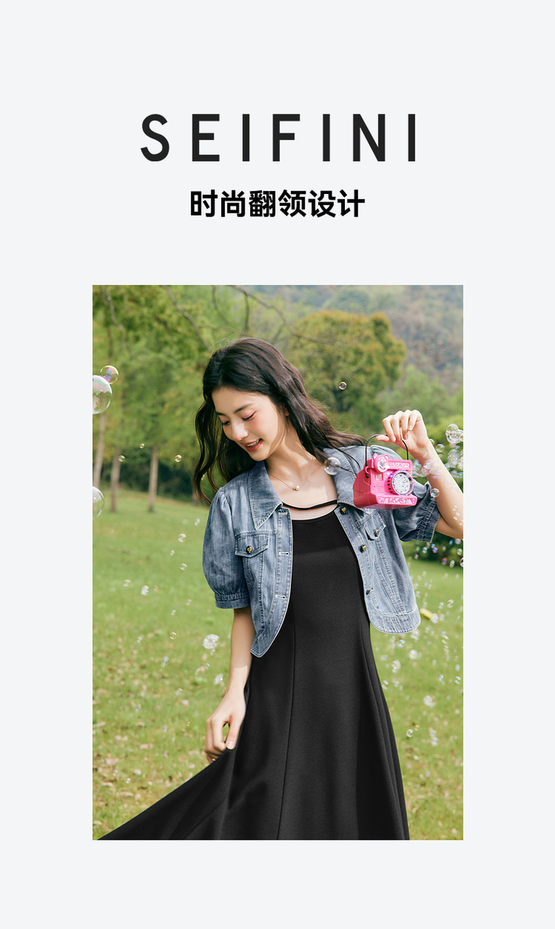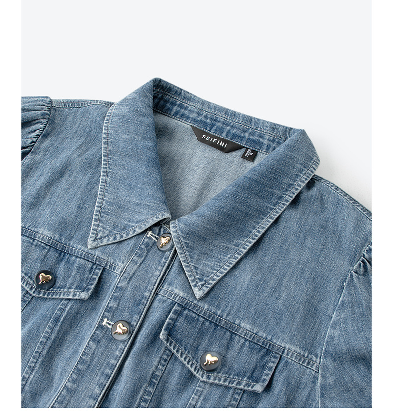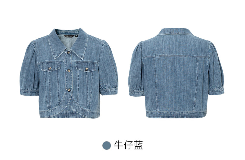 【商场同款】诗凡黎翻领纯棉牛仔短外套2024夏新款3F4510311-H