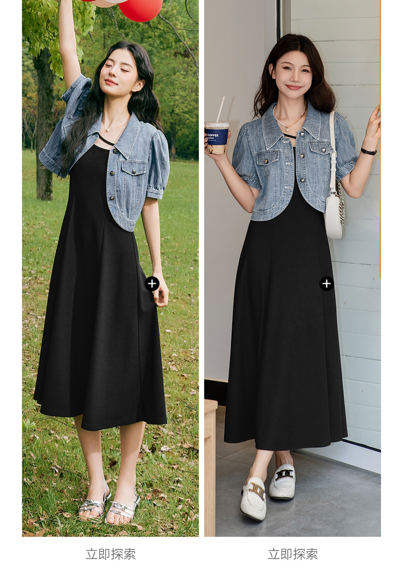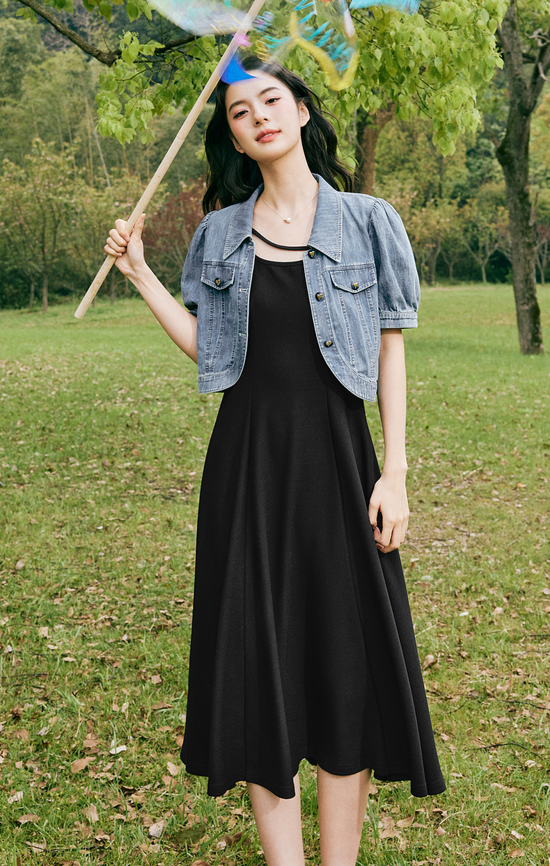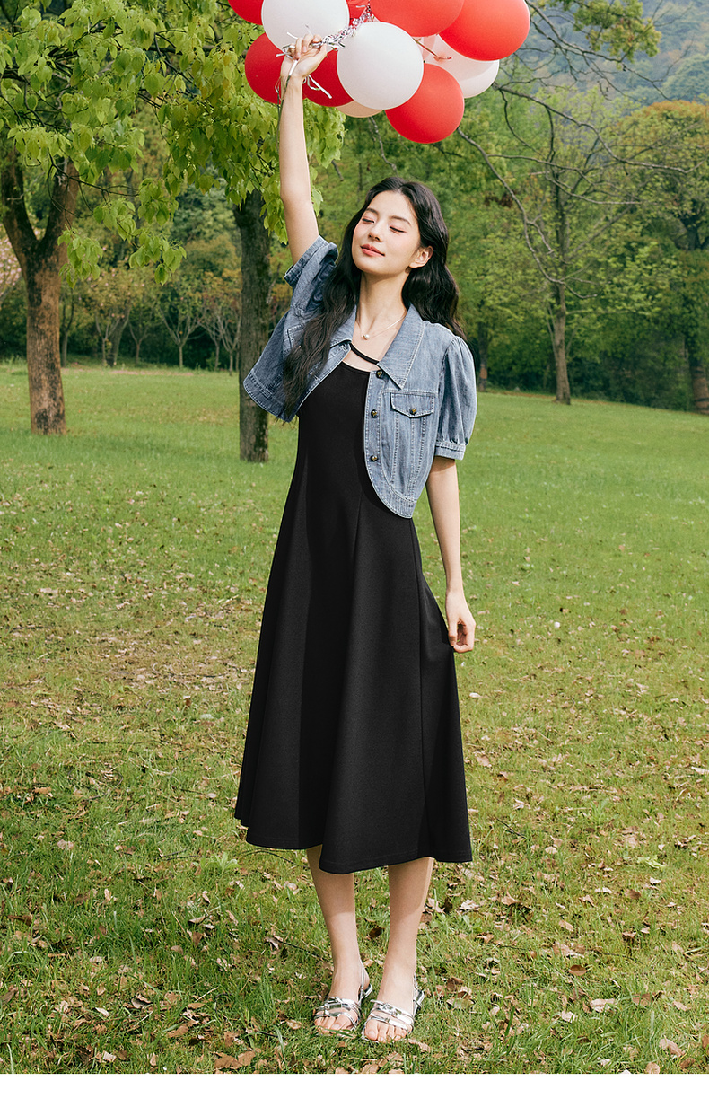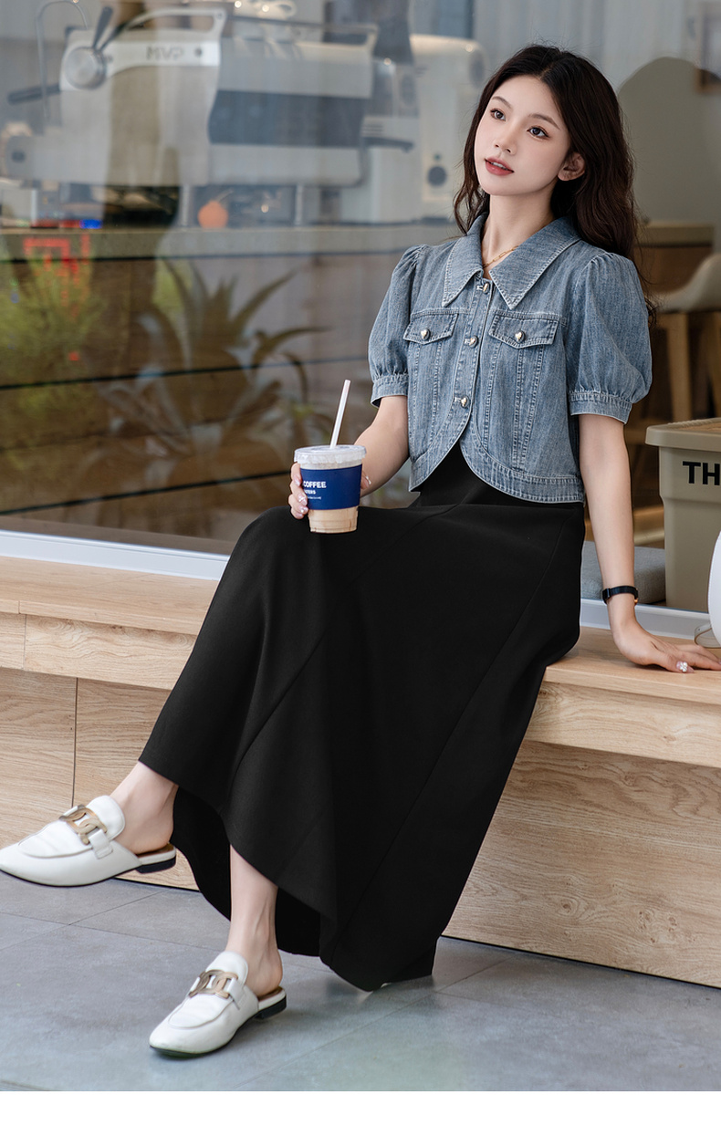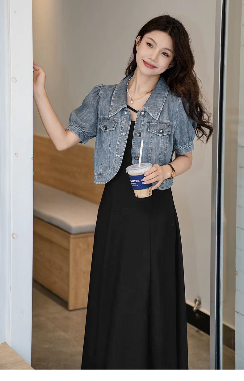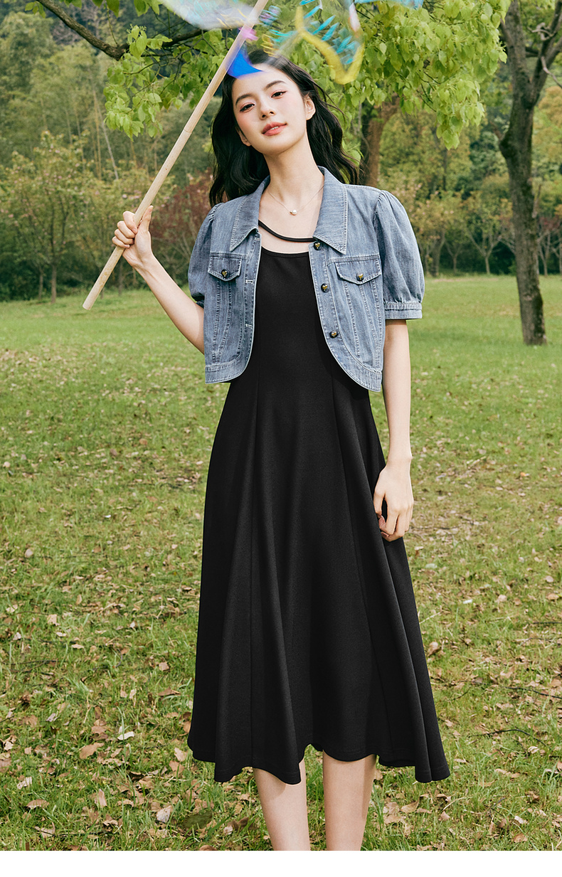 【商场同款】诗凡黎翻领纯棉牛仔短外套2024夏新款3F4510311-H