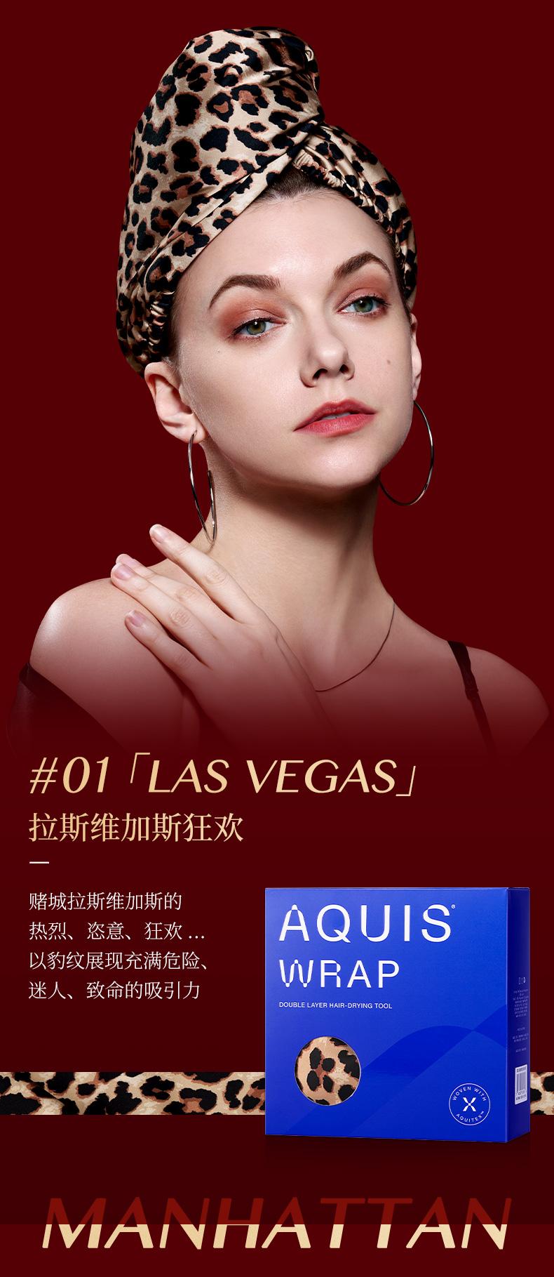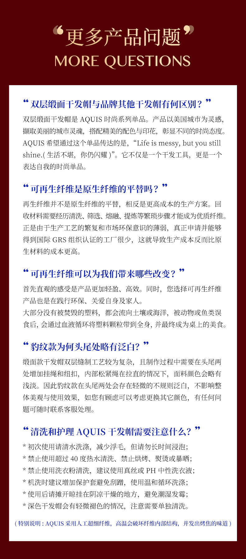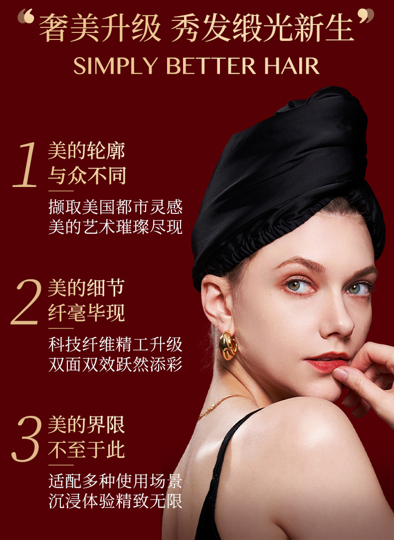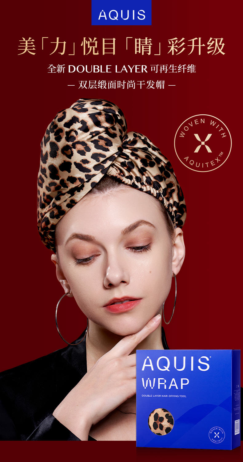 品牌直发 AQUIS 双层缎面干发帽 25x74cm 豹纹/黑色/香槟粉 厚发受损发