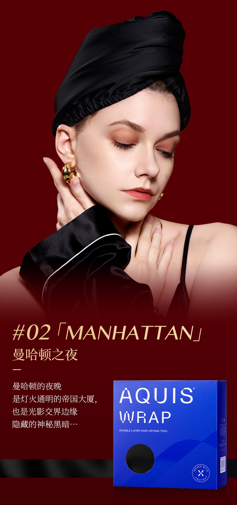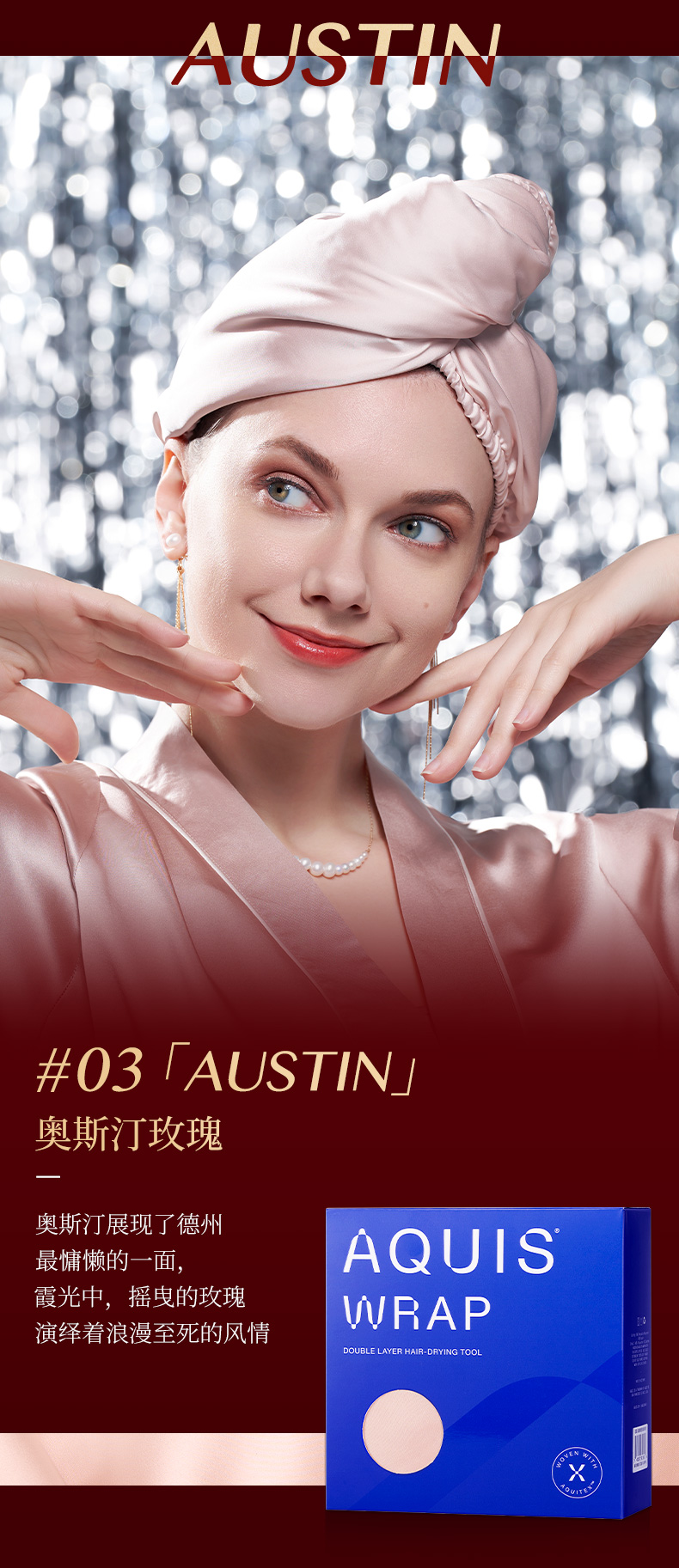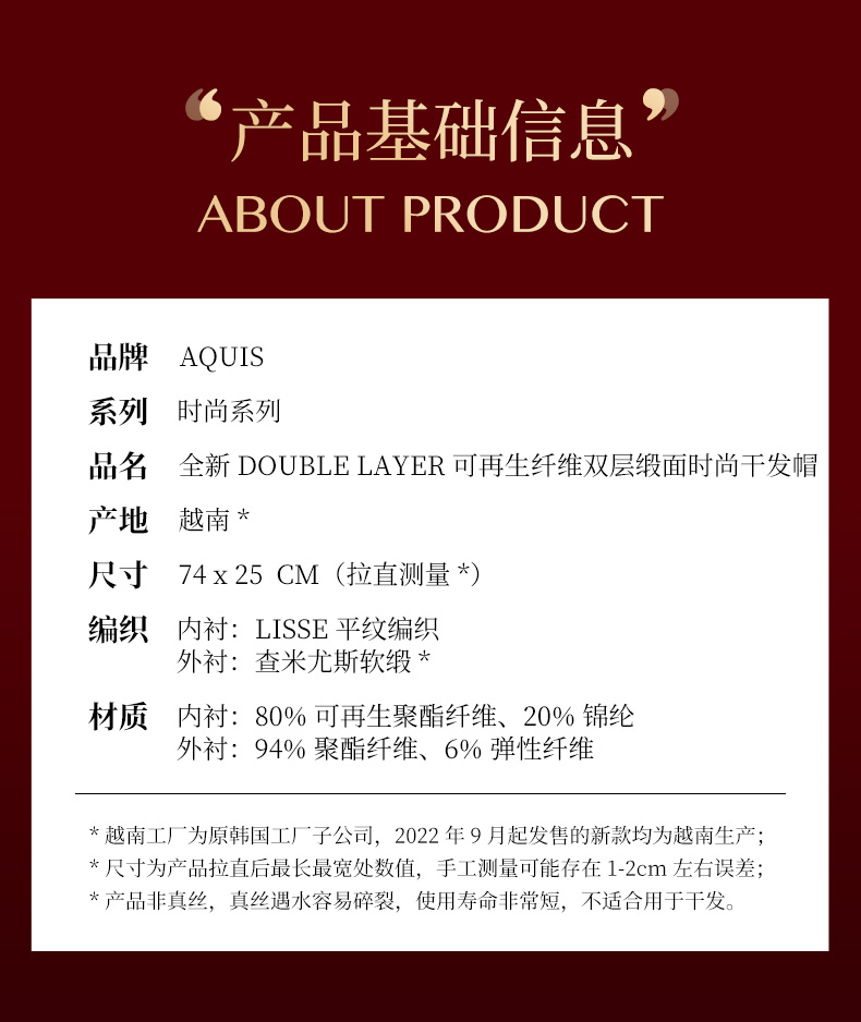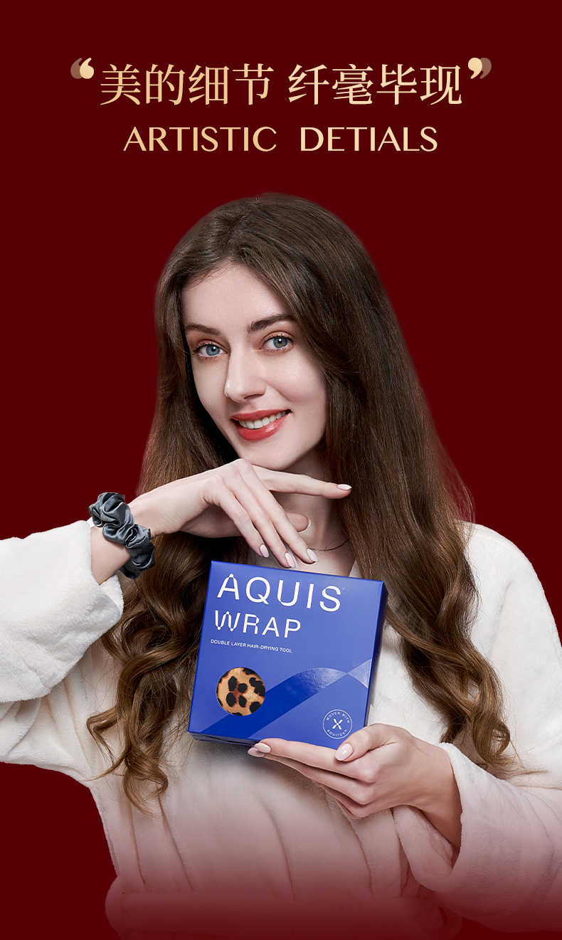 品牌直发 AQUIS 双层缎面干发帽 25x74cm 豹纹/黑色/香槟粉 厚发受损发