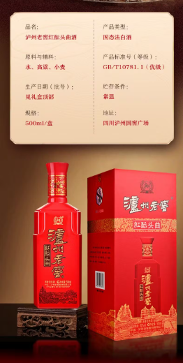 泸州老窖红酝头曲42度浓香型白酒500ml