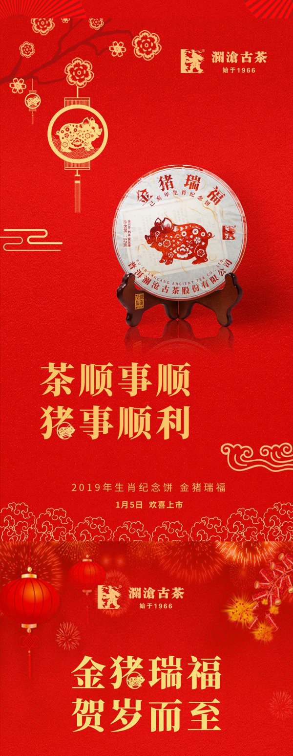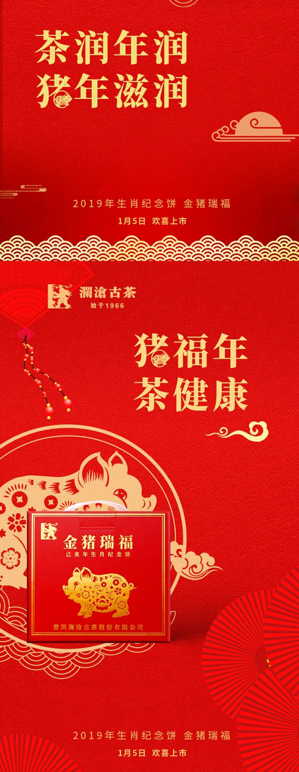 澜沧古茶金猪瑞福生肖2019年普洱茶熟茶饼茶云南七子饼茶茶叶357g