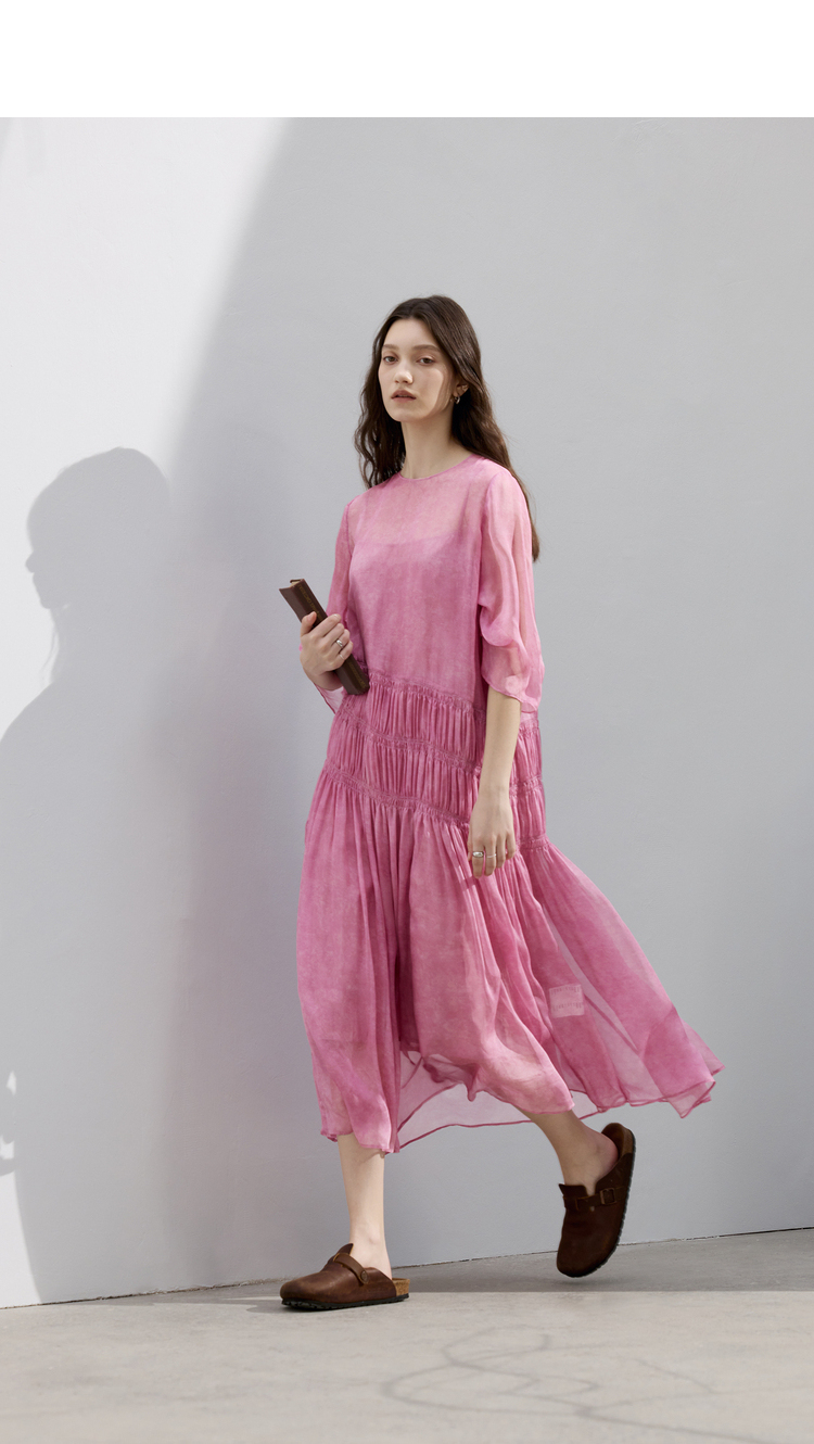 半圆/D24201068/宽松绝美桑蚕丝连衣裙