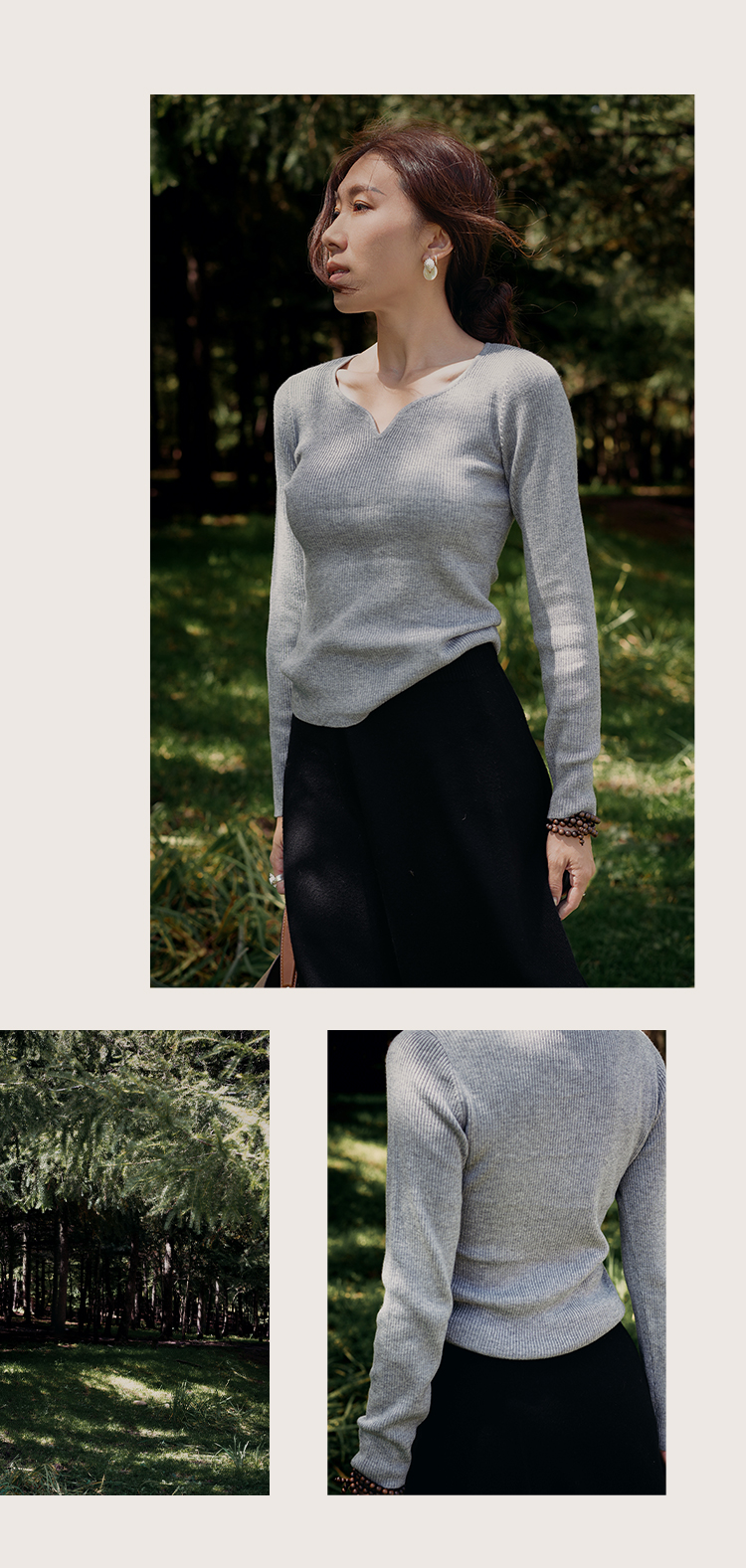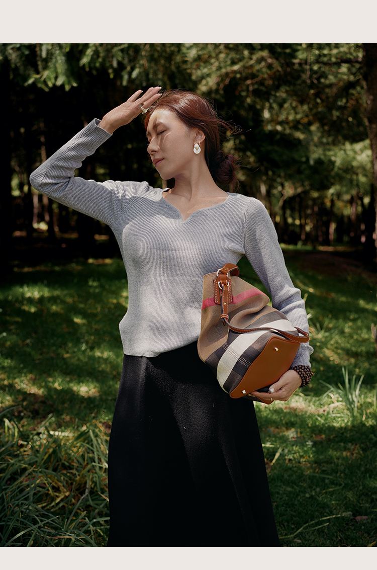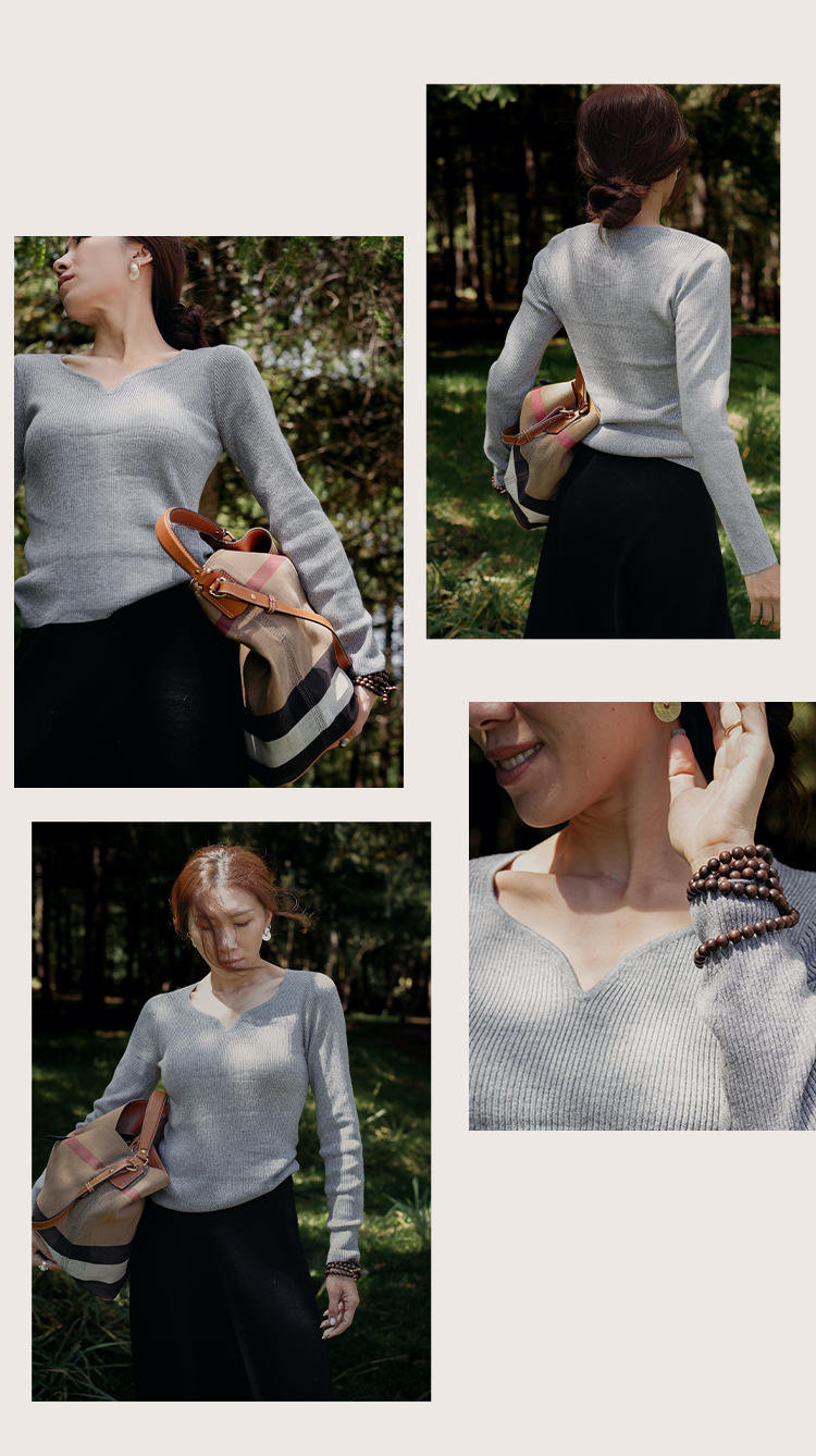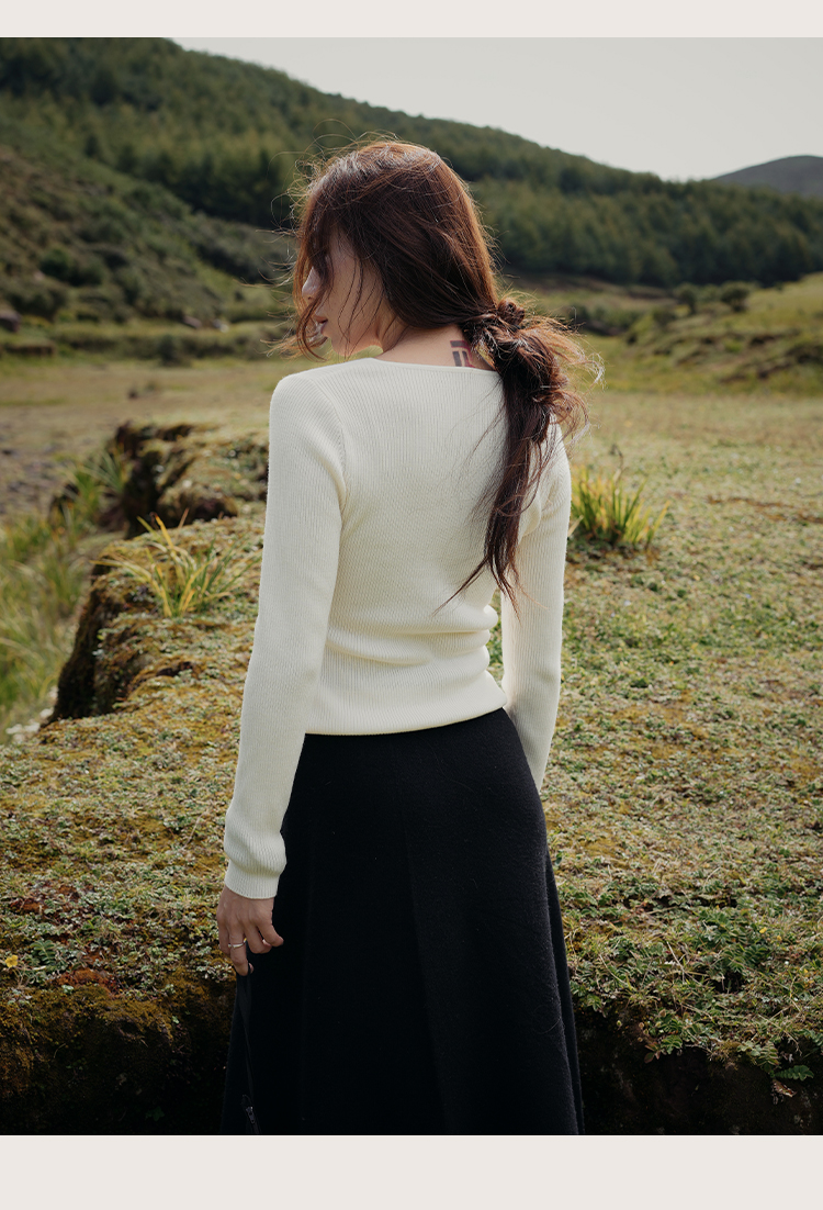 L RECNAVA 绵羊毛 可机洗毛衣 优雅V领修身针织衫