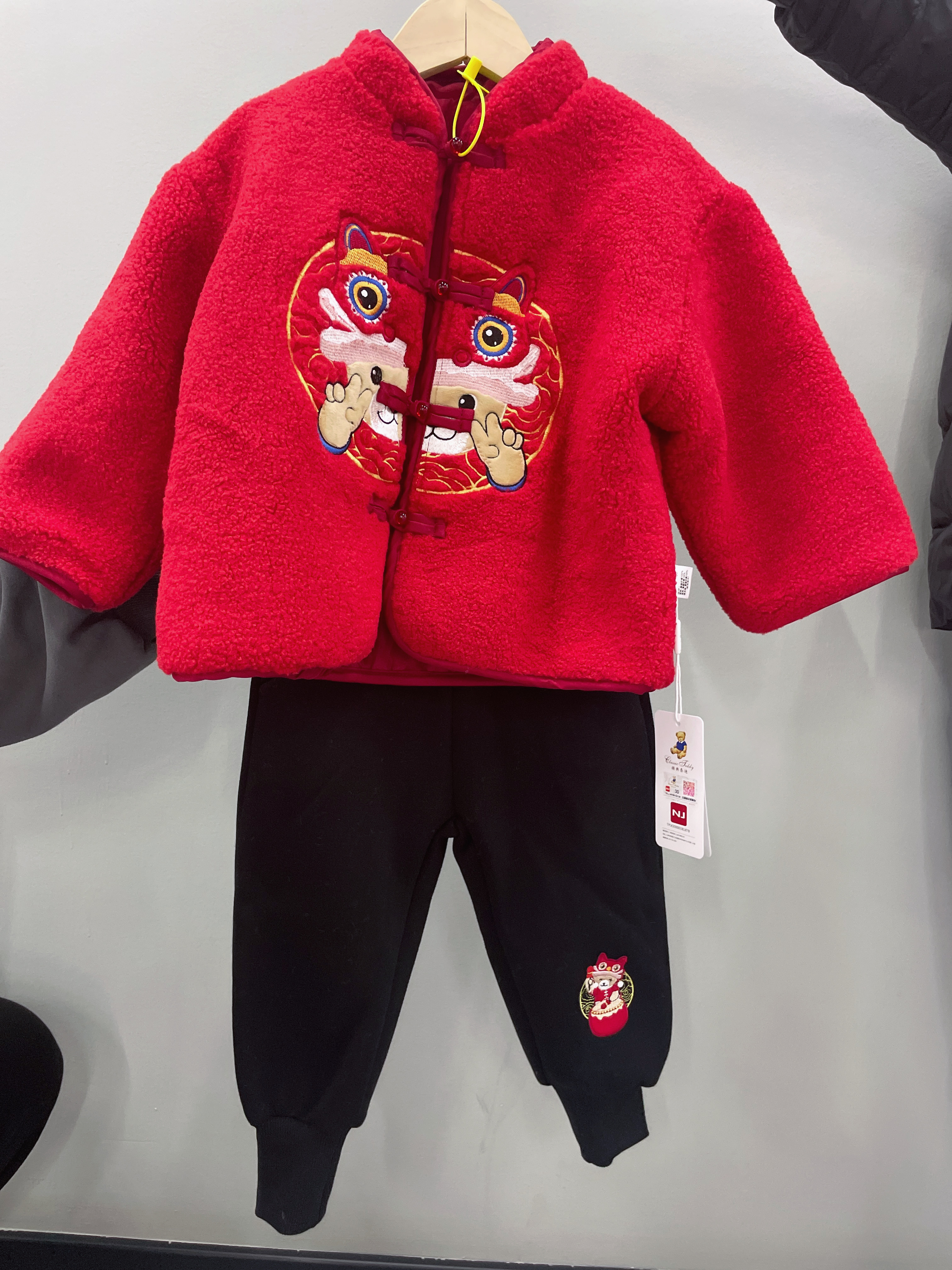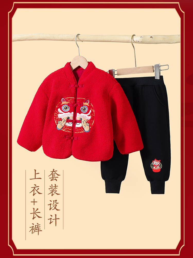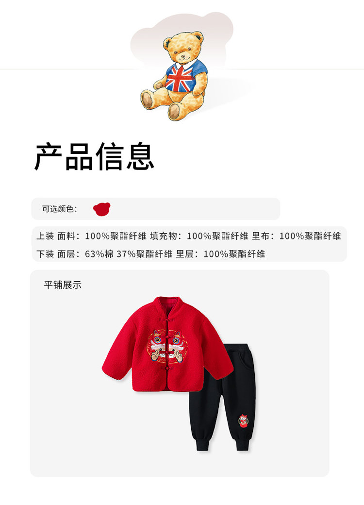 【清仓捡漏】【夹棉两件套】【100-140】【精典泰迪】儿童加厚拜年服红色年服套装