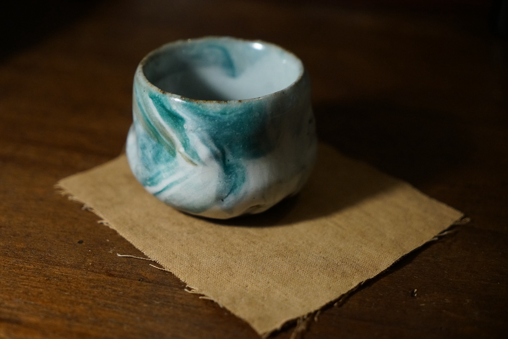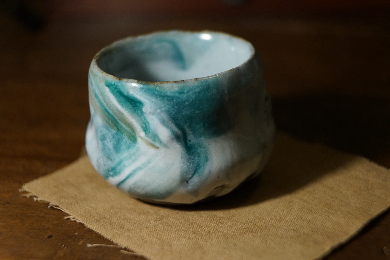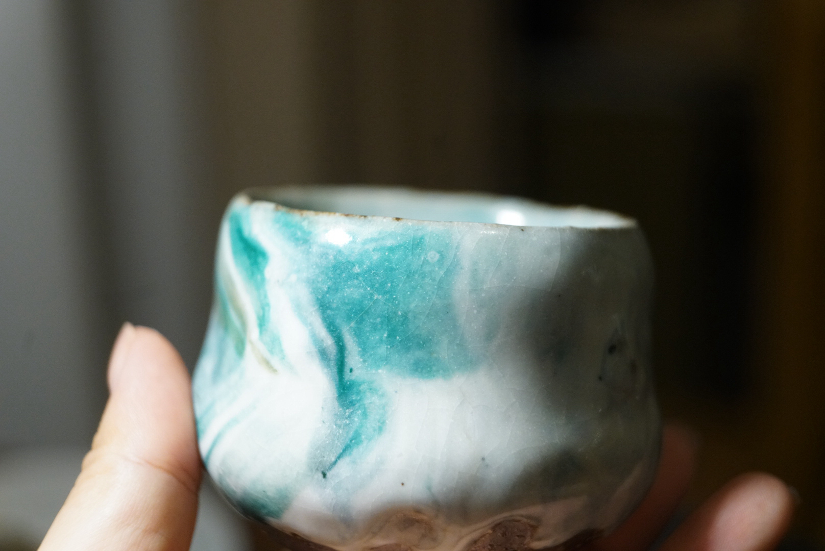 用柴窑烧,会有柴烧火焰的火痕,落灰的次层感,以及柴烧的复杂气氛和高温的窑变,烧出变化非常丰富的志野杯。志野之色,温润如玉,苍茫浑厚,狂放热烈。